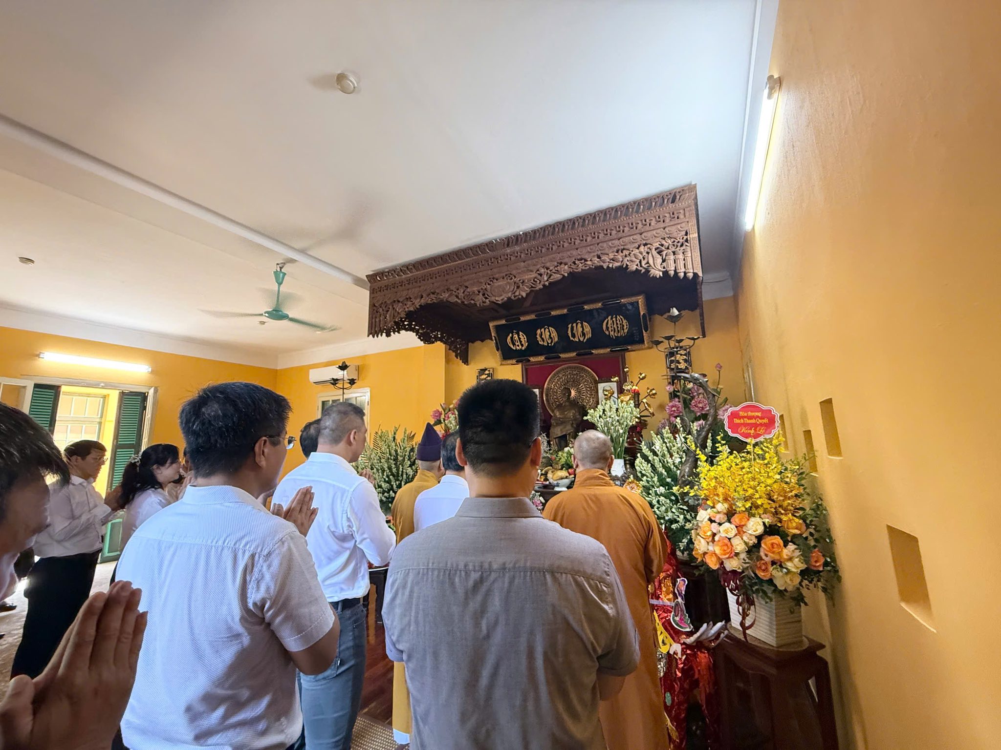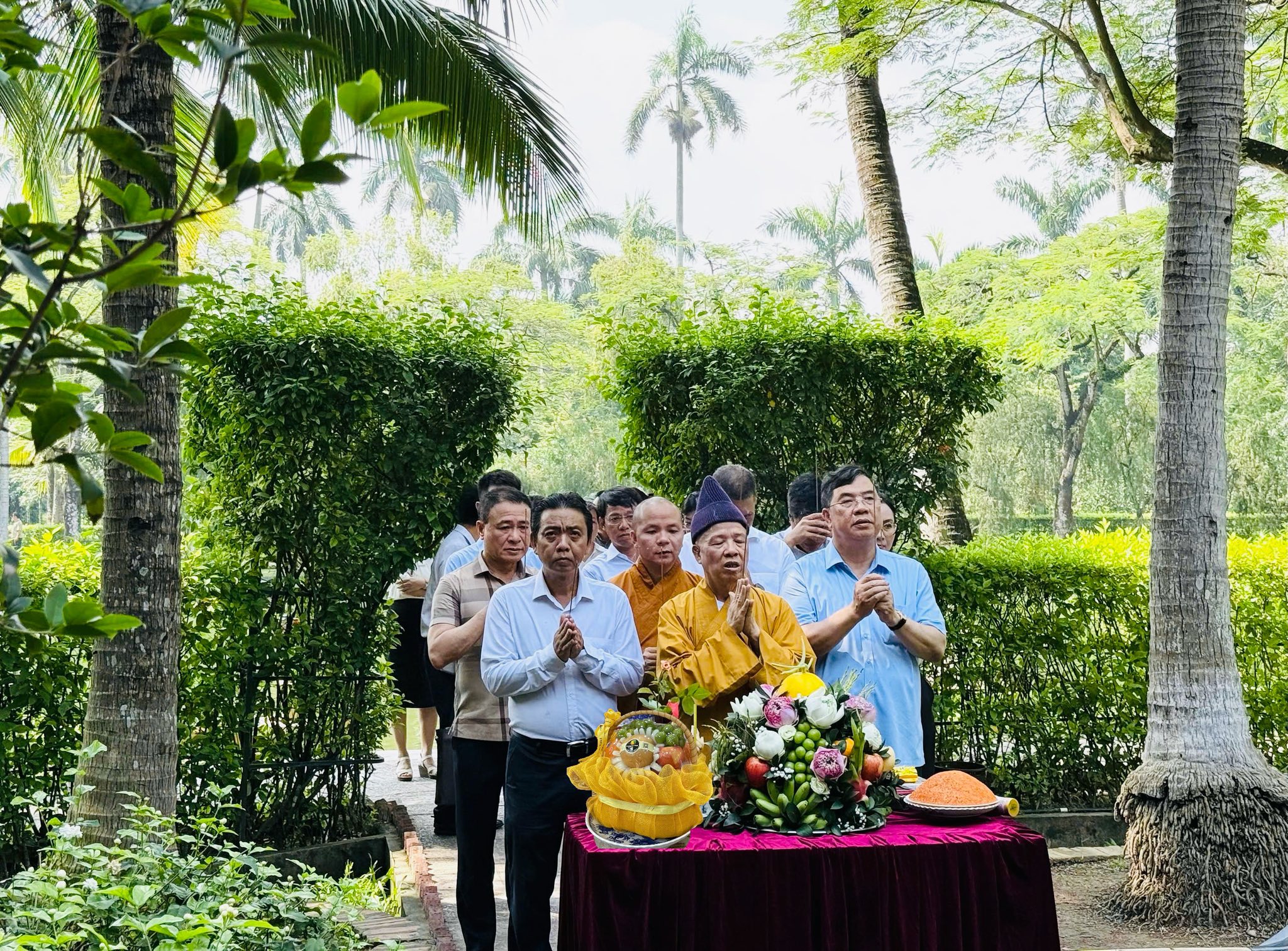 Sau lễ dâng hương, Hoà thượng cùng các đại biểu tiến hành nghi thức tâm linh truyền thống để chuẩn bị cho việc sửa chữa, chỉnh trang lại Khu di tích thờ Bác chào mừng Lễ kỷ niệm 80 năm Cách mạng Tháng Tám và Quốc khánh 2-9.