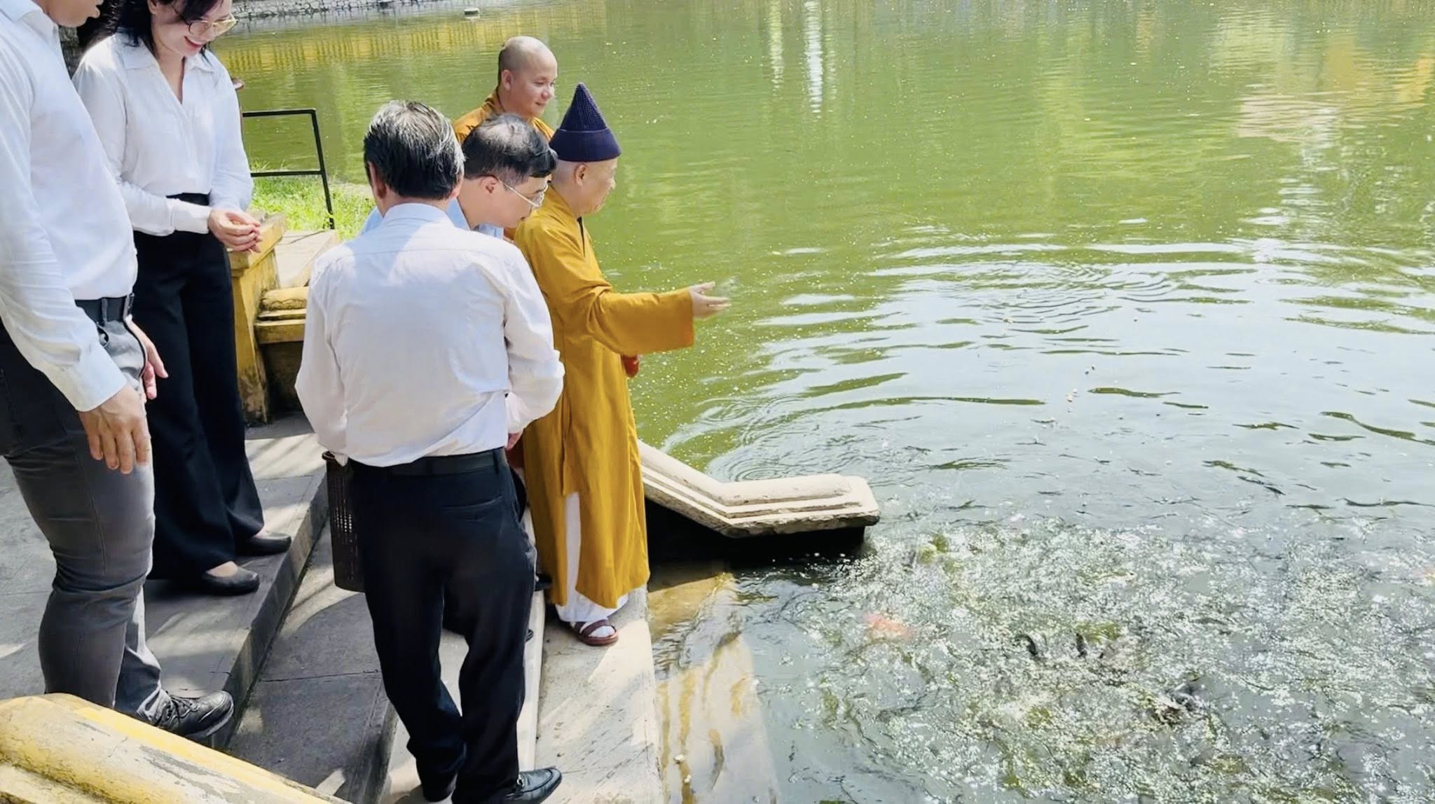 Hoà thượng cùng đoàn đại biểu đã thăm và thả cá tại ao cá Bác Hồ. Cùng ôn lại kỉ niệm sinh thời Chủ tịch Hồ Chí Minh với lối sống giản dị, Bác chọn sống trong ngôi nhà sàn mộc mạc, hòa mình với thiên nhiên, chăm cá, trồng cây quanh vườn, sống đời thanh đạm điền viên. Vị cha già kính yêu, cả cuộc đời vì nước vì dân.