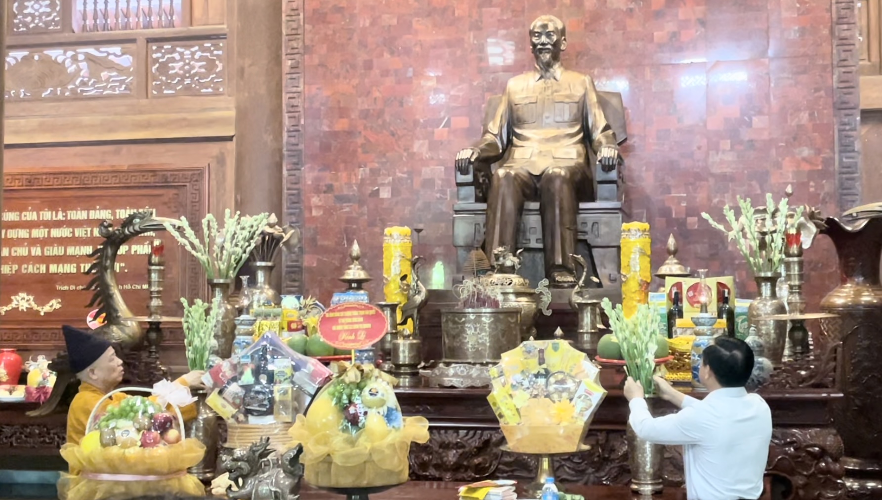 Hoà thượng cùng các đại biểu đã thành kính dâng hoa, dâng hương tưởng nhớ 55 năm, ngày Chủ tịch Hồ Chí Minh đi xa 2/9/1969 (nhằm ngày 21/7 năm Kỷ Dậu).
