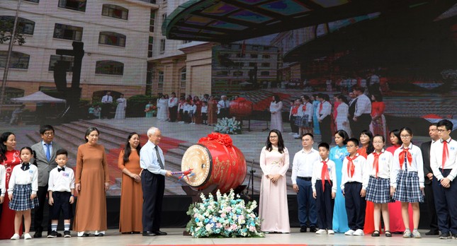Đại tá/ nhà giáo ưu tú Nguyễn Trọng Vĩnh đã đánh trống khai trường. Tiếng trống khai trường đặc biệt của người thầy gần 90 tuổi vang lên đều đặn mỗi năm học, giòn giã, rền vang, bất chấp những khó khăn, thử thách, như nhắc nhở mỗi em học sinh cùng hướng về một tương lai tươi sáng.