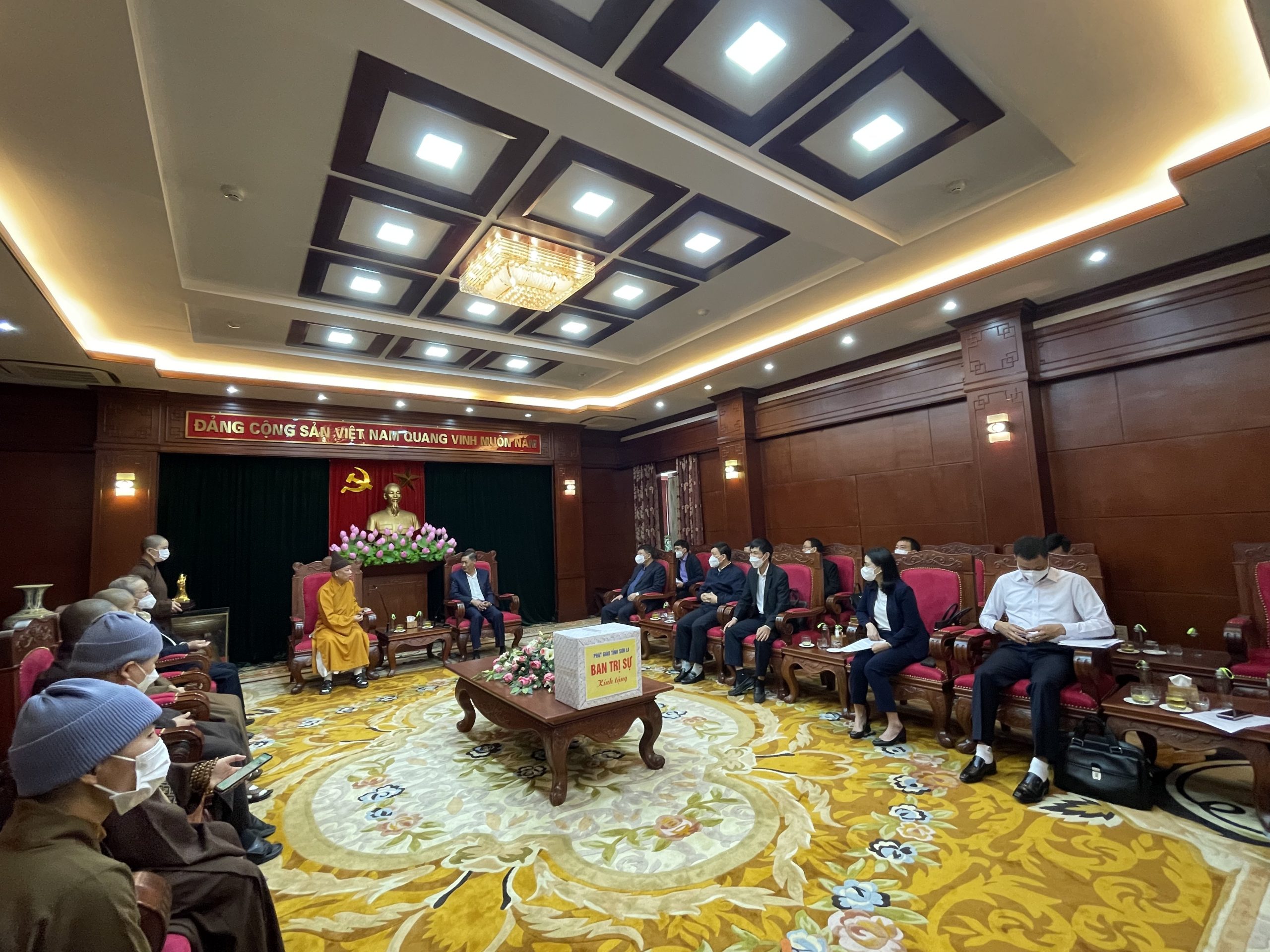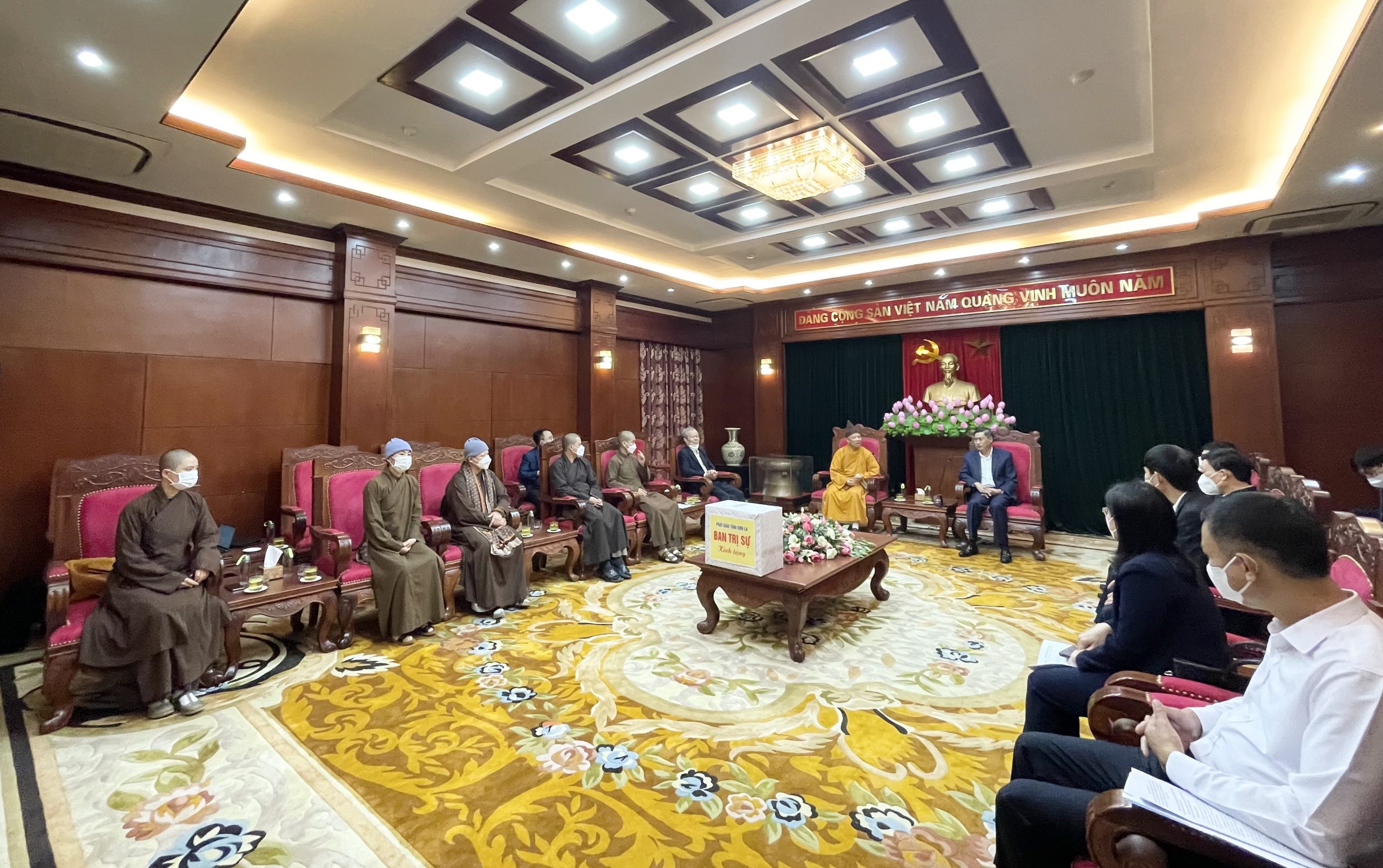 Tiếp phái đoàn Ban Trị sự có ông Nguyễn Hữu Đông – Ủy viên Trung ương Đảng, Bí thư Tỉnh ủy, Trưởng Đoàn Đại biểu Quốc hội tỉnh Sơn La; ông Lò Minh Hùng – Phó Bí thư Thường trực Tỉnh ủy; Ông Nguyễn Thành Công – Phó Chủ tịch Ủy ban Nhân dân tỉnh Sơn La, cùng các lãnh đạo sở, ban, ngành liên quan.