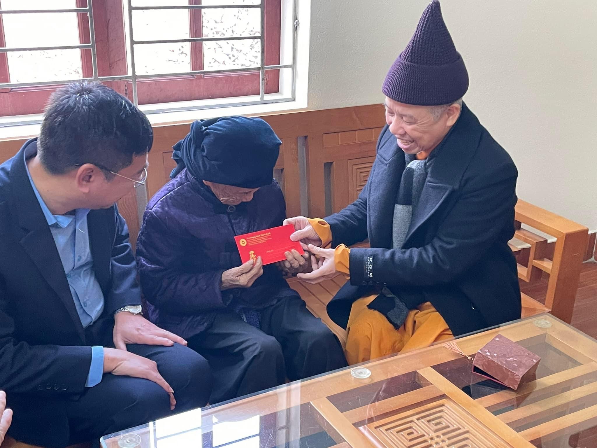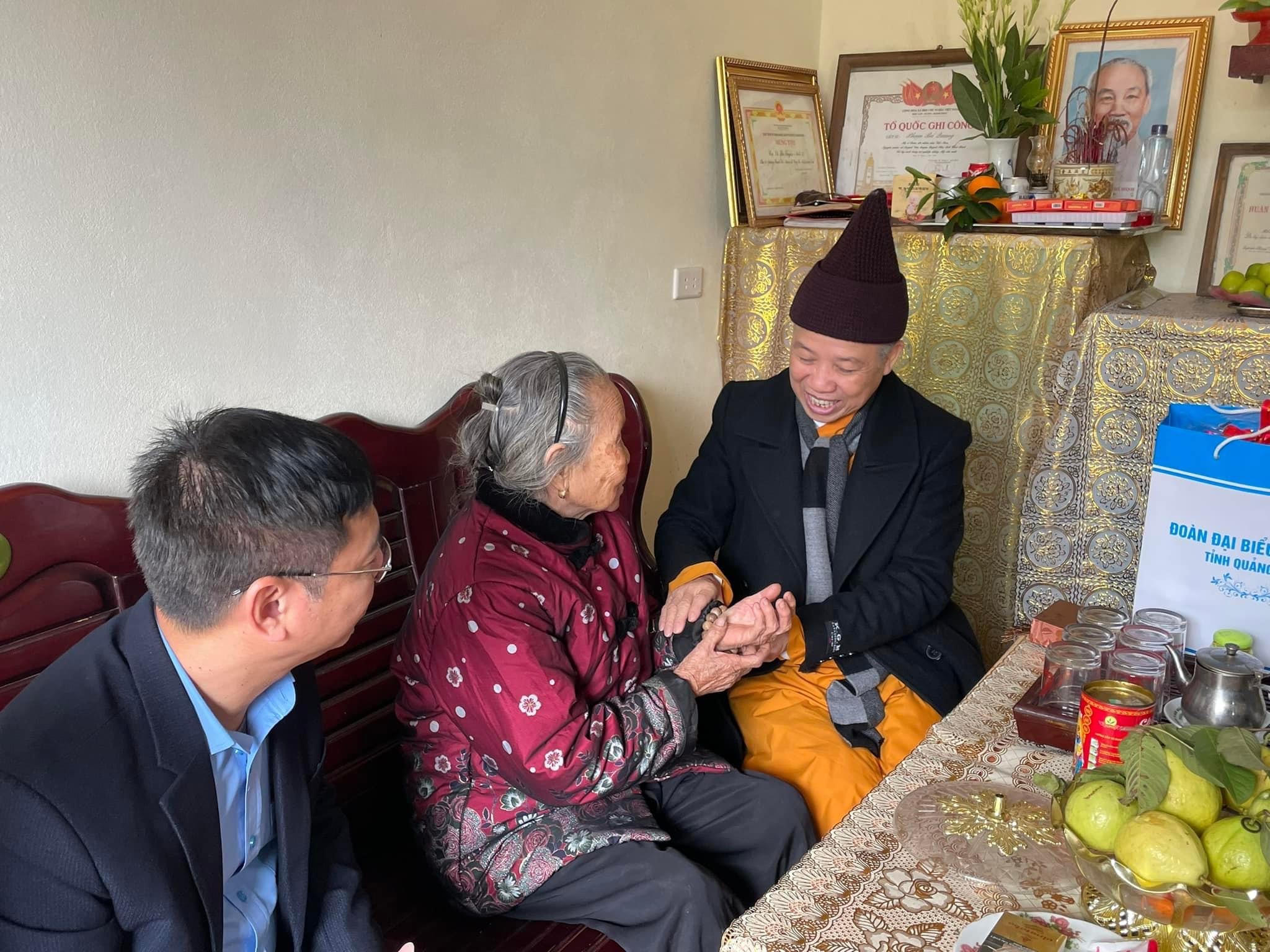 Với truyền thống “uống nước nhớ nguồn”, tại các địa phương, Hoà thượng đã đi thăm và tặng quà Mẹ Việt Nam anh hùng Hoàng Thị Nghi năm nay 92 tuổi có chồng và con trai là Liệt sĩ – khu 10, phường Thanh Sơn, TP Uông Bí; thăm, chúc tết gia đình bà Nguyễn Thị Bé 82 tuổi là vợ Liệt sĩ, gia đình chính sách tại thành phố Uông Bí.