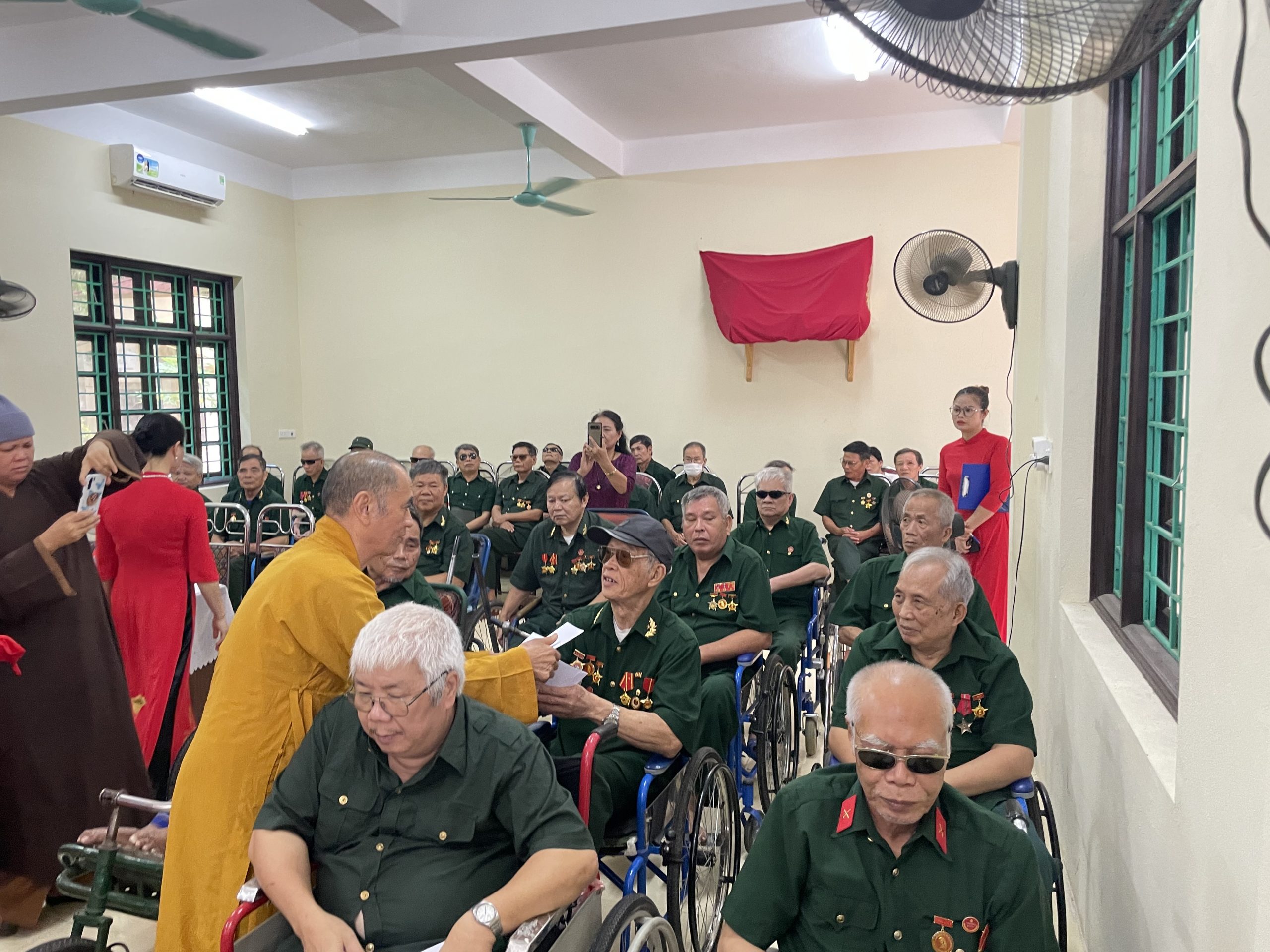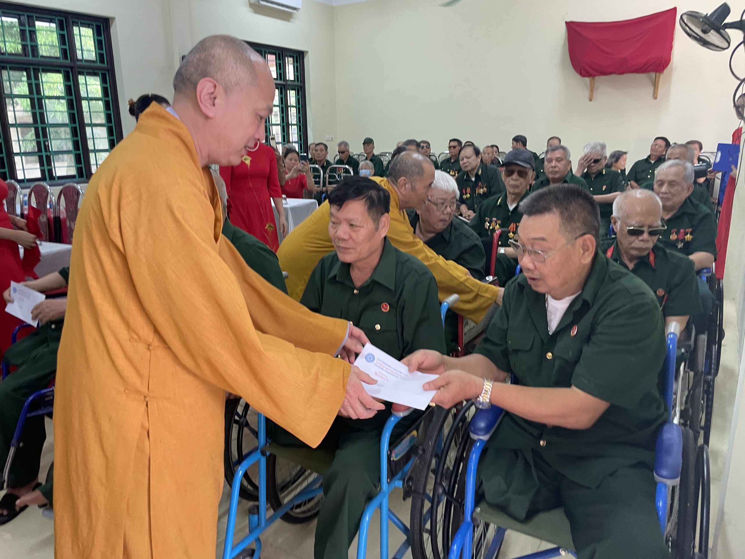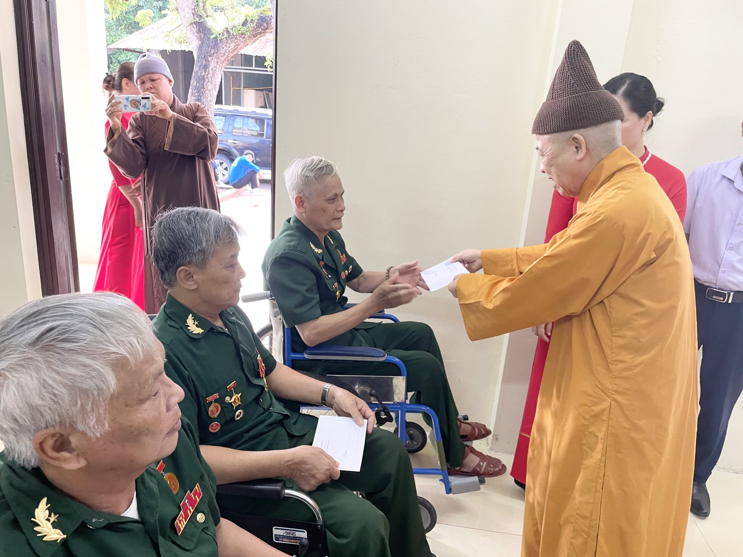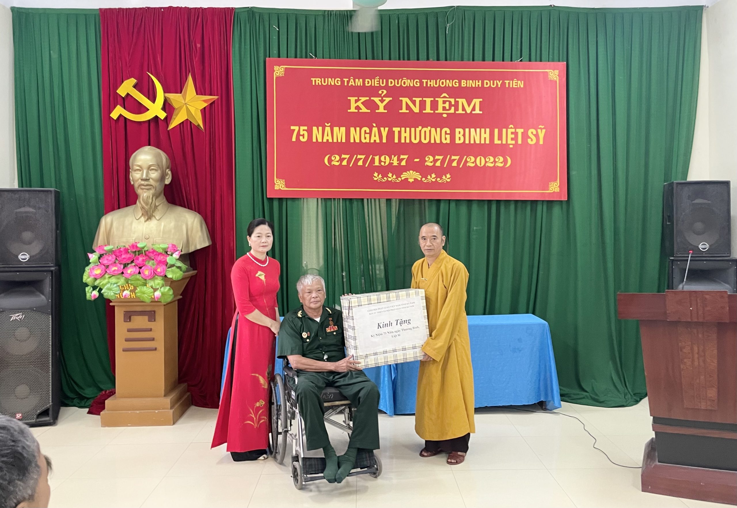 Bày tỏ sự tri ân sâu sắc trước những hy sinh to lớn của các đồng chí thương, bệnh binh đã cống hiến một phần xương máu của mình vì độc lập, tự do cho Tổ quốc, Hoà thượng cùng các Thượng toạ trong Ban Trị sự đã trao tận tay thương, bệnh binh cùng cán bộ nhân viên Trung tâm Điều dưỡng thương binh Duy Tiên những món quà ý nghĩa.