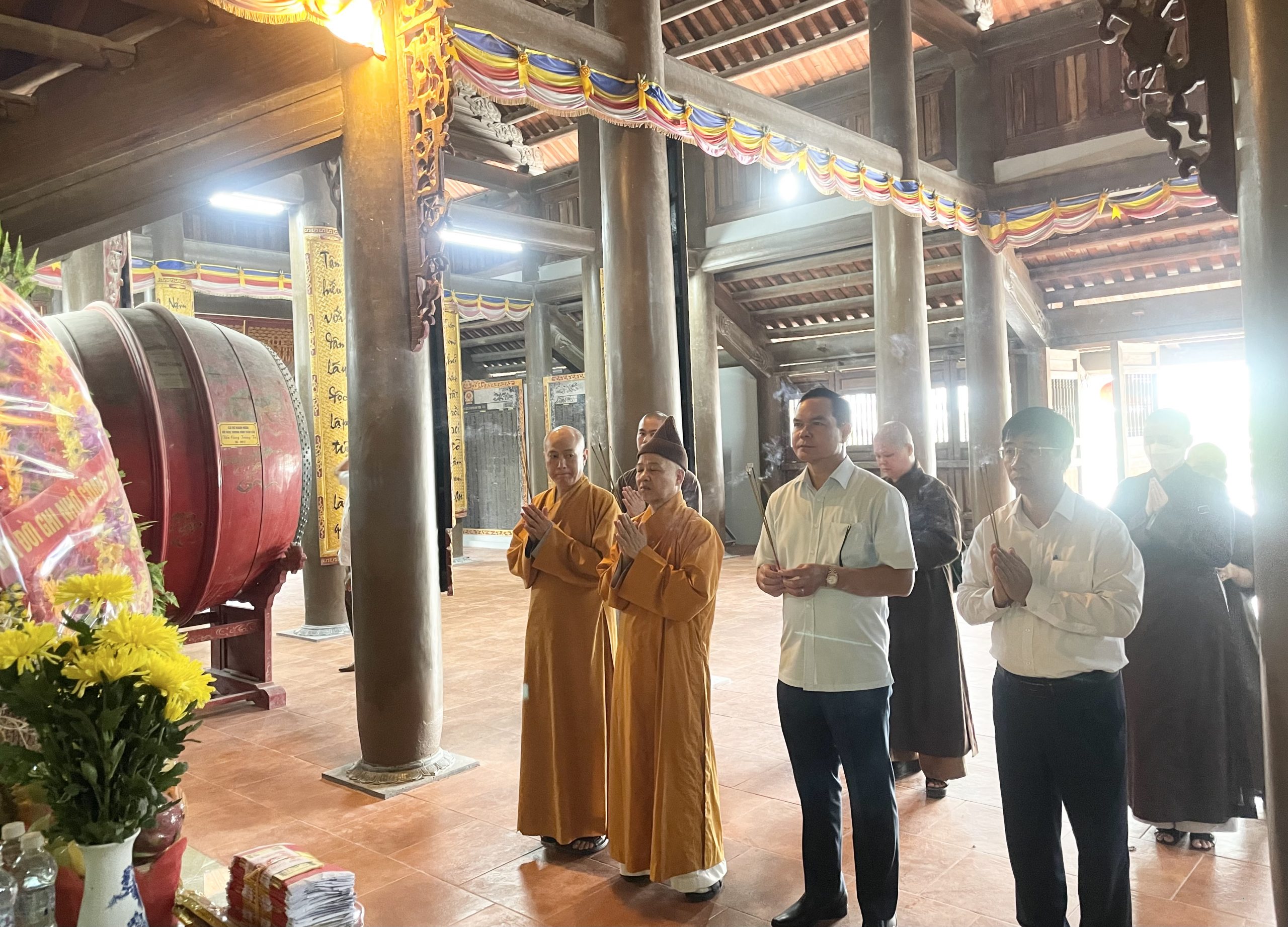 Chiều cùng ngày, Hòa thượng và Chư tôn đức trong Ban Trị sự đã cùng ông Nguyễn Đình Khang – Ủy viên TW Đảng, Chủ tịch Tổng liên đoàn Lao động VN, Nguyên Bí thư tỉnh Hà Nam đã đến dâng hương tại đền thờ liệt sĩ tỉnh.