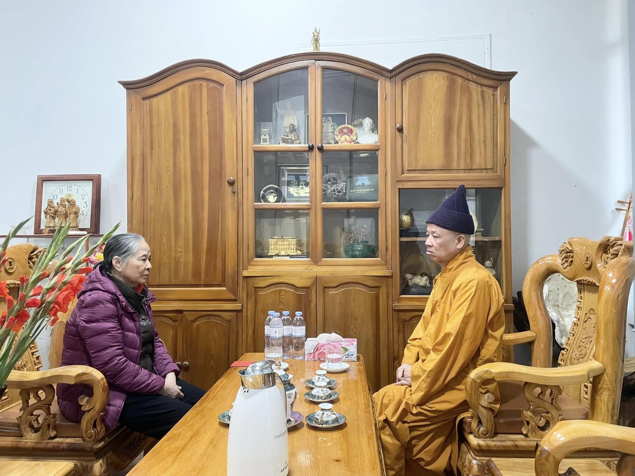 Không kìm được nước mắt vì xúc động gặp lại Hoà thượng, bà cảm ơn Hoà thượng đã tới thắp hương và thăm gia đình, tri ân những tình cảm quý mến của Hoà thượng đã dành cho Tổng Bí thư Nguyễn Phú Trọng từ trước tới nay.