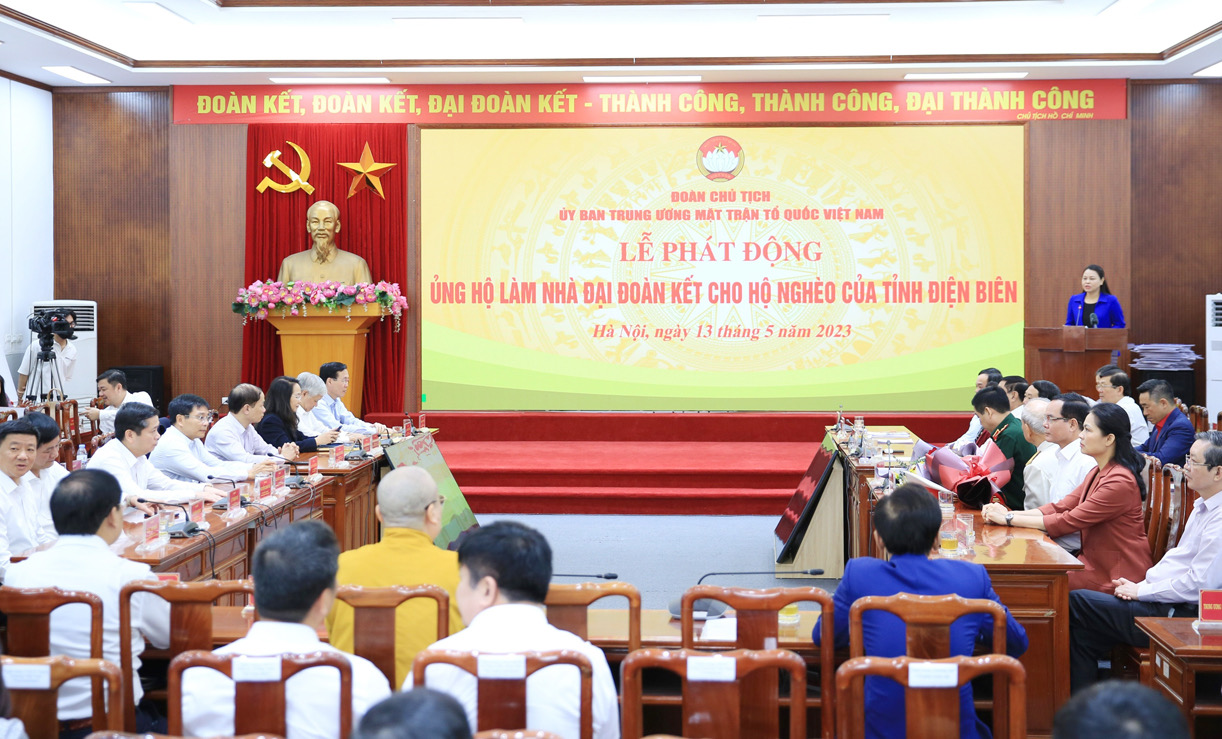 Sáng nay, ngày 13/5/2023, Uỷ ban Trung ương MTTQ Việt Nam chủ trì tổ chức Lễ phát động ủng hộ làm nhà đại đoàn kết cho hộ nghèo của tỉnh Điện Biên hướng tới kỷ niệm 70 năm chiến thắng Điện Biên Phủ (7/5/1954 – 7/5/2024).
