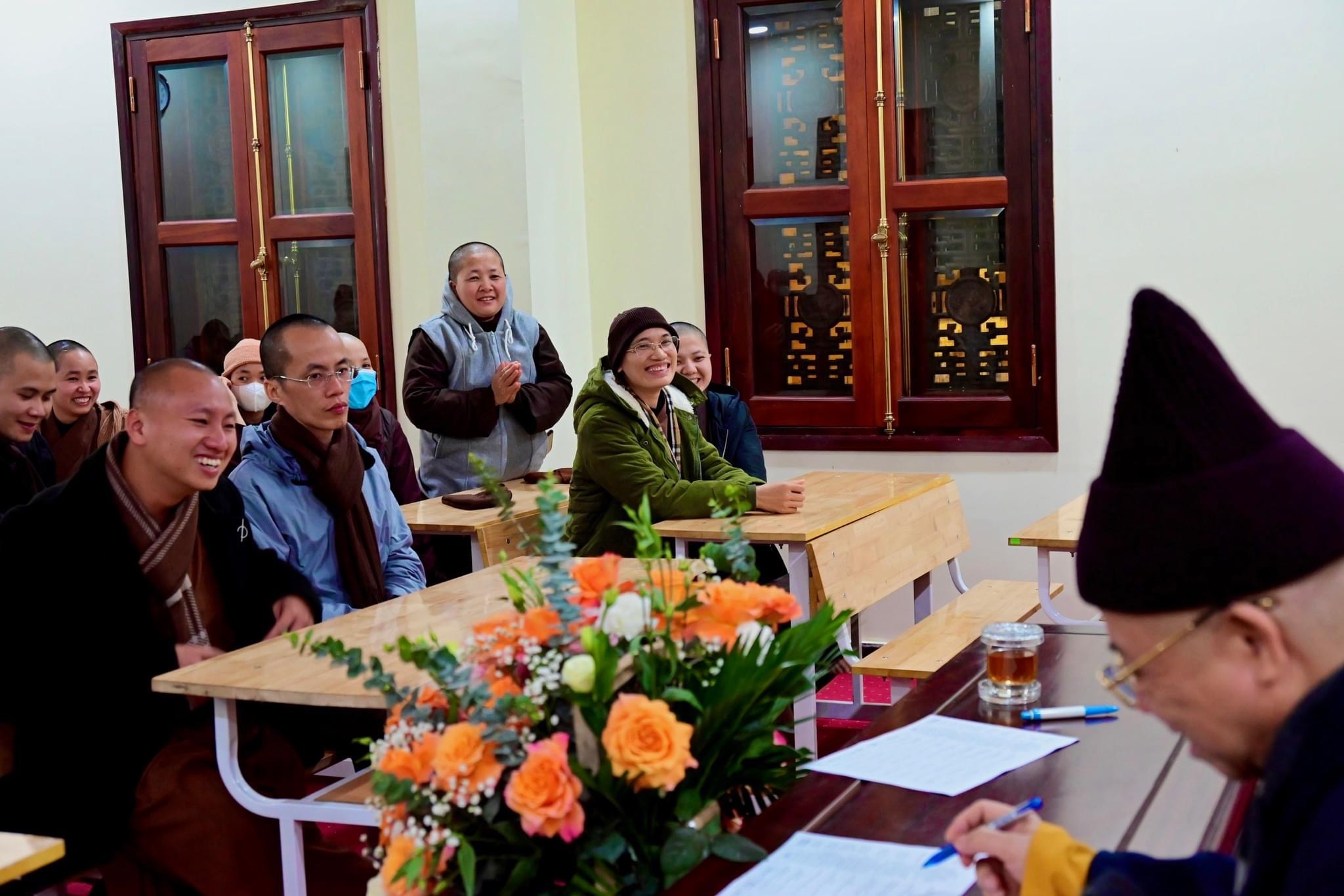 Bên cạnh đó, Hoà thượng và Giáo Sư cũng thăm hỏi về tình hình học tập, đời sống sinh hoạt thường nhật của Tăng Ni sinh.