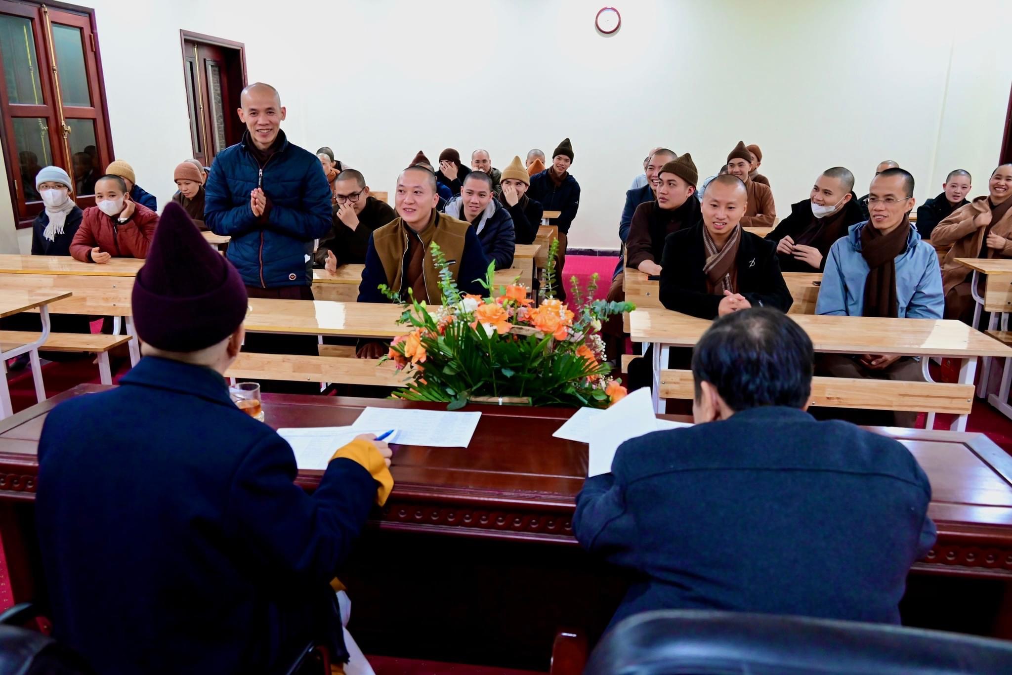 Tại buổi chia sẻ, Hoà thượng đã động viên, khích lệ tinh thần Tăng Ni sinh. Đặc biệt tại Đại hội Phật giáo toàn quốc lần thứ IX vừa qua, Tăng Ni sinh Học viện đã hoàn thành tốt vai trò và trách nhiệm hỗ trợ Đại hội thành công tốt đẹp.