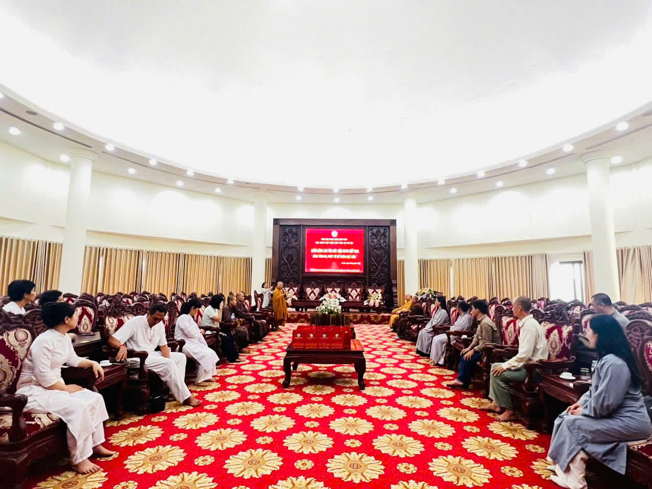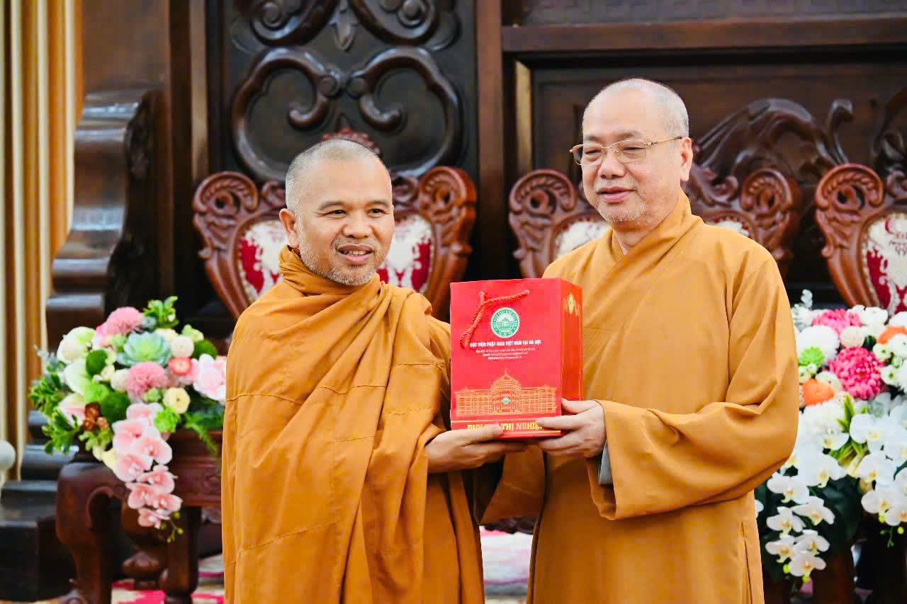 Hôm nay, ngày 20/5/2025 phái đoàn chư Tôn đức do TT. Thích Giác Hoàng – UV HĐTS – Tổng Thư ký Viện Nghiên cứu Phật học Việt Nam dẫn đầu, thừa lệnh Hòa thượng Thích Giác Toàn – Viện trưởng Viện NCPHVN đã đến thăm Học viện PGVN Hà Nội vấn an chư Tôn đức Hội đồng Điều hành và cúng dường Bộ kinh Bản Duyên.
