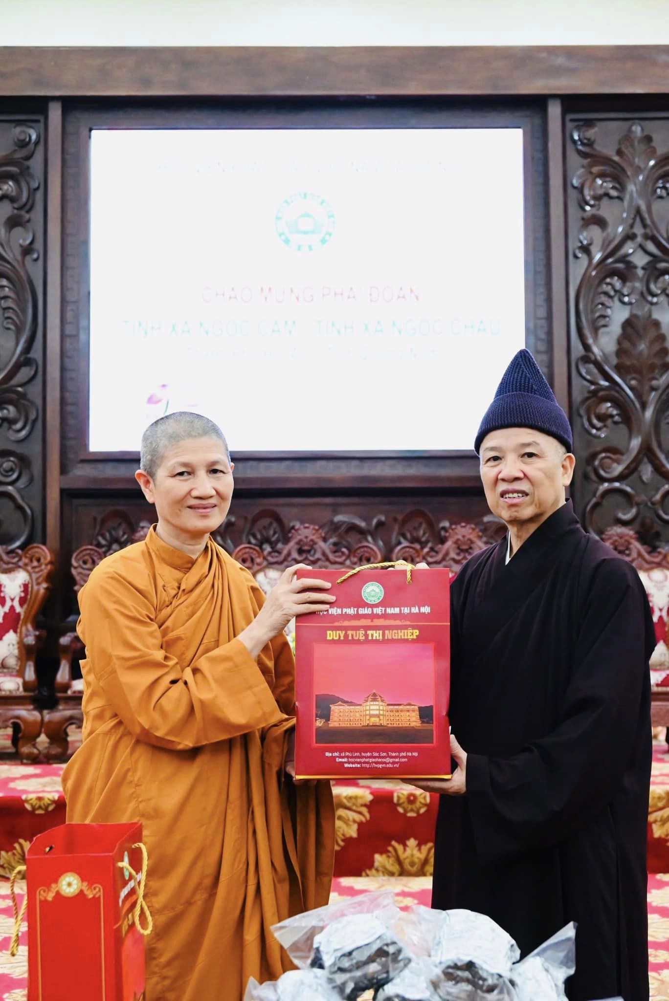 Thượng toạ cùng đoàn Phật tử cung kính trên quý Hoà thượng và Học viện chút tịnh tài cùng tịnh phẩm quê nhà từ Hội An kính cúng quý Ngài.