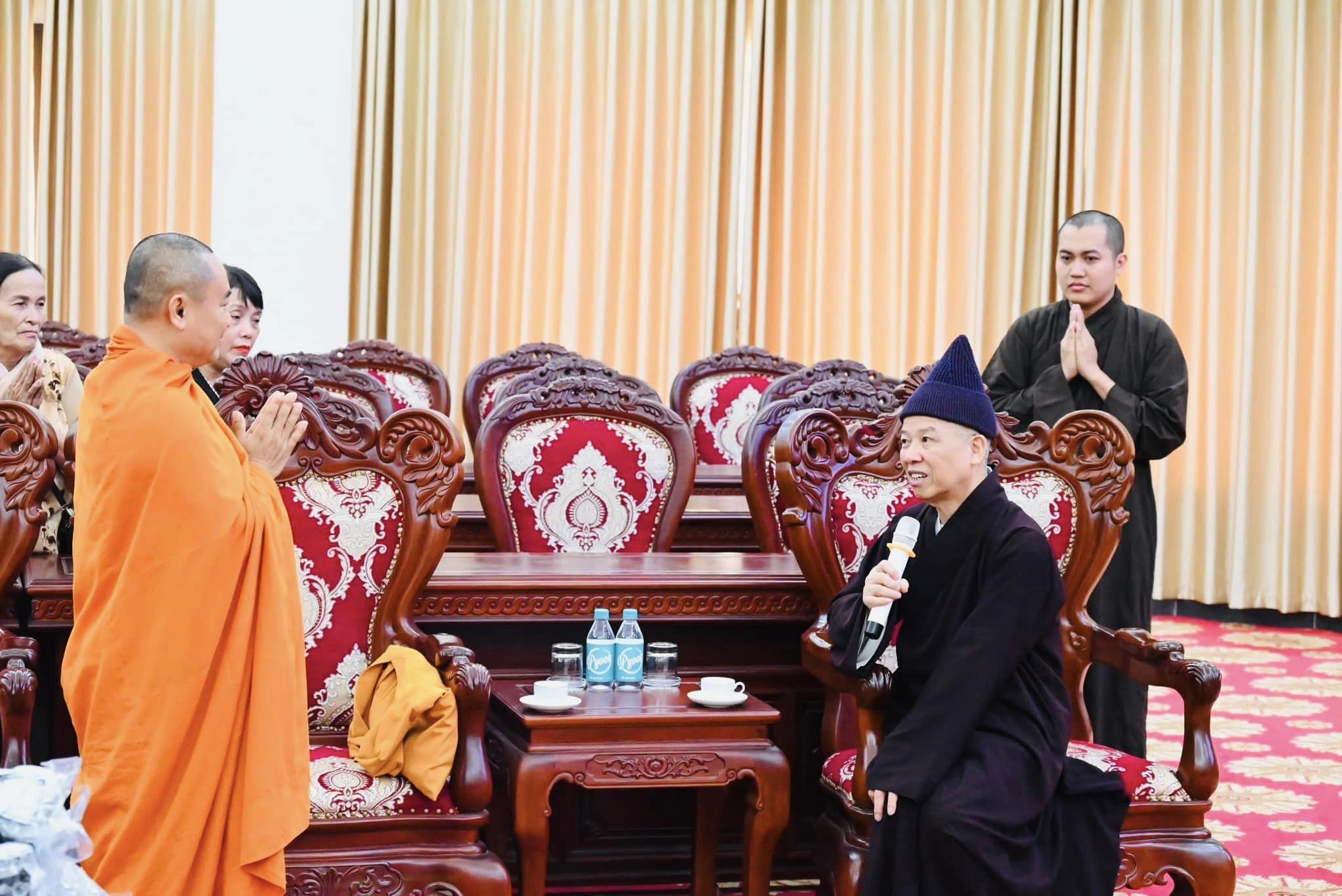 Đại diện đoàn có: Thượng Toạ Thích Giác Nhẫn-Trưởng Ban Phật Giáo Quốc tế tỉnh Quảng Nam, Phó BTS GHPGVN Thành Phố Hội An, Trụ trì tịnh xá Ngọc Cẩm; Ni Sư: Thích Nữ Nguyệt Liên – Phó Ban từ thiện PG Tỉnh Quảng Nam, Tri Sự Tịnh xá Ngọc Châu cùng quý vị Phật tử vinh dự vấn an diện kiến Hoà thượng Viện trưởng.