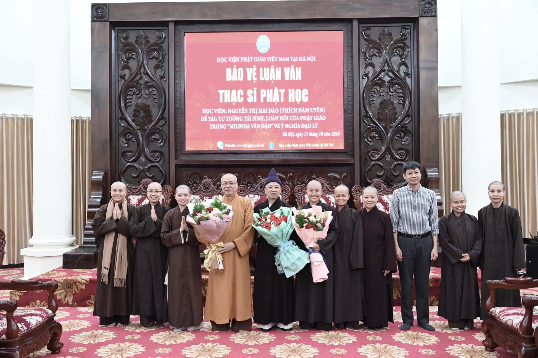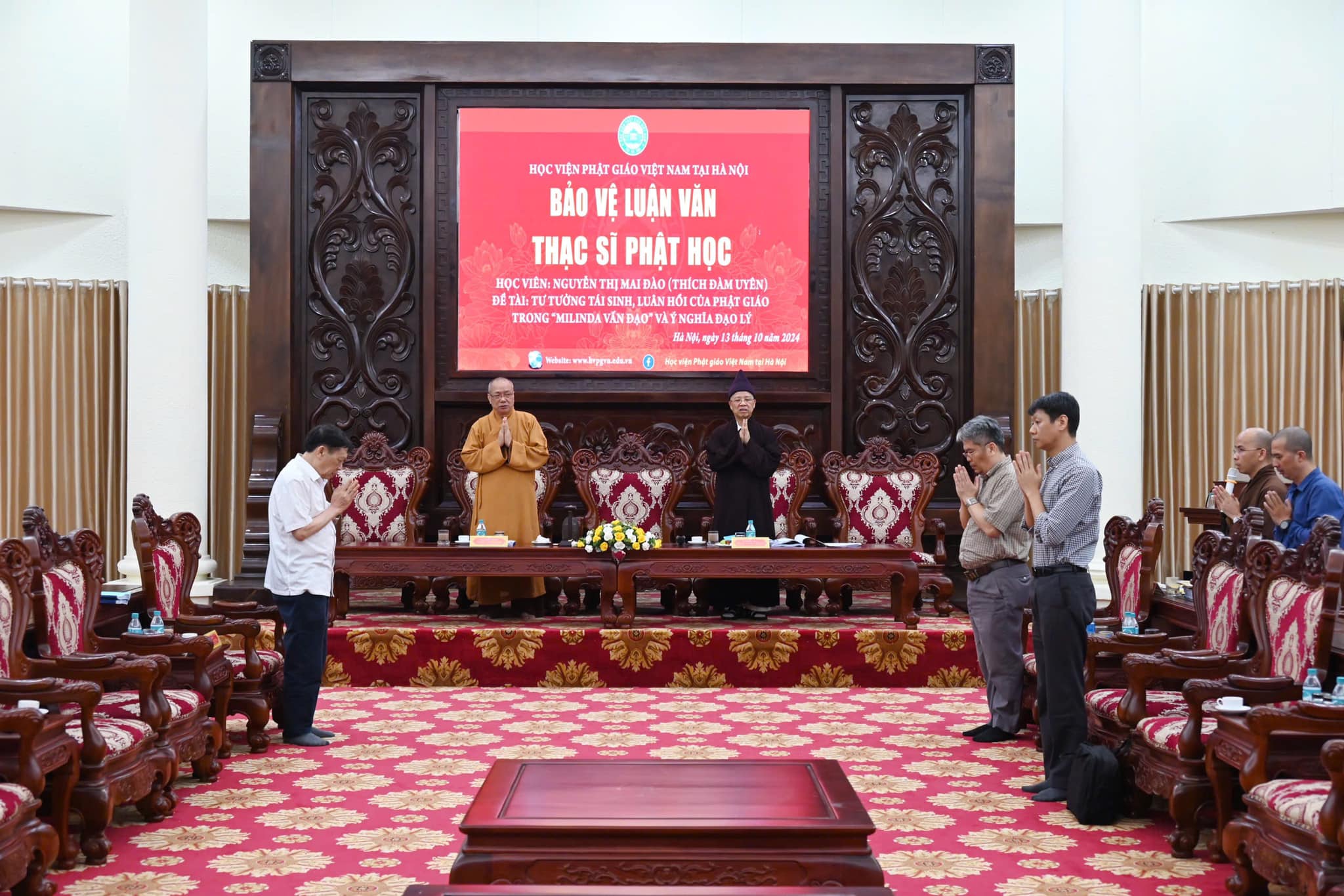 KVO – Ngày 13/10/2024, tại Học viện Phật giáo Việt Nam tại Hà Nội tổ chức Hội đồng đánh giá luận văn thạc sĩ Phật học cho học viên Nguyễn Thị Mai Đào (Thích Đàm Uyên) với đề tài: Tư tưởng tái sinh, luân hồi của Phật giáo trong Milinda vấn đạo và ý nghĩa đạo lý, do PGS.TS Hoàng Thị Thơ hướng dẫn.