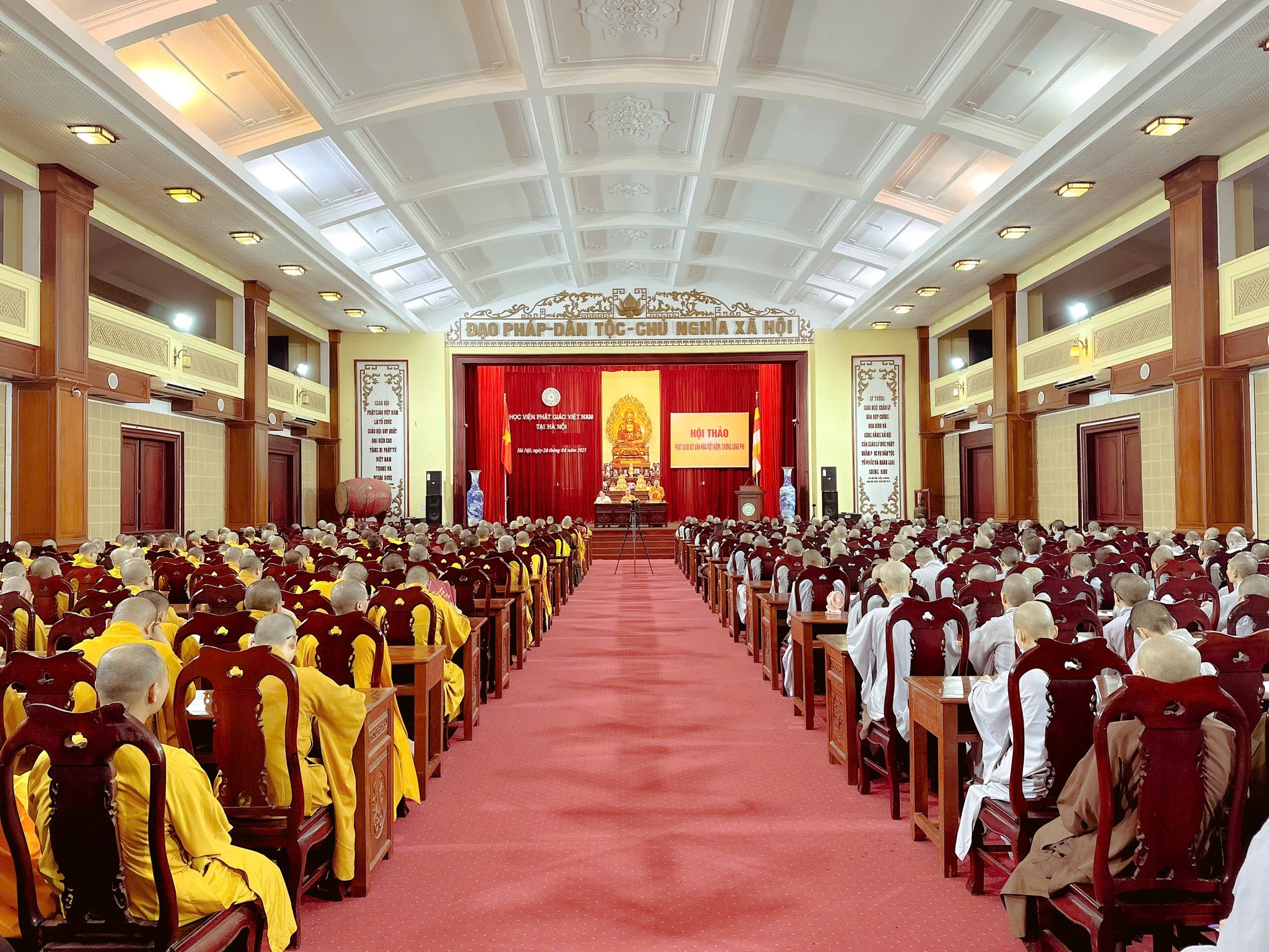 Tối ngày 20/8/2025, tại Hội trường Bảo tàng (Học viện PGVN tại Hà Nội), đã diễn ra Hội thảo Khoa học cấp Học viện với chủ đề: “Phật giáo với việc thực hiện văn hóa tiết kiệm, chống lãng phí”.