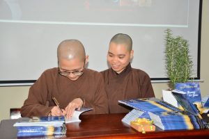 Sư cô Thích Nữ Hữu Hiếu ký tặng sách đến pháp lữ tại Học viện PGVN Hà Nội