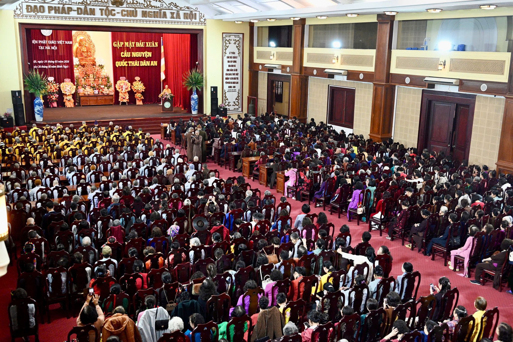 Sáng nay, ngày 14 – 3, (tức ngày 26/Giêng/Bính Ngọ), Học viện PGVN tại Hà Nội long trọng tổ chức gặp mặt đầu xuân Bính Ngọ – 2026. Nhân dịp này, Học viện đã cử hành nghi lễ cầu nguyện thế giới hòa bình, quốc thái dân an, chào mừng cuộc bầu cử đại biểu Quốc hội khóa XVI và HĐND các cấp nhiệm kỳ 2026 – 2031.