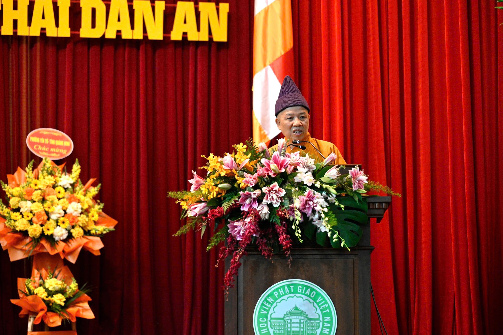 Hòa thượng Thích Quảng Tùng, Phó Chủ tịch Hội đồng Trị sự kiêm Trưởng ban Từ thiện – xã hội TƯGH thay mặt TƯGH phát biểu tán thán công đức của quý Phật tử gần xa đã phát tâm công đức ủng hộ cho sự nghiệp giáo dục đào tạo Tăng tài của Học viện.