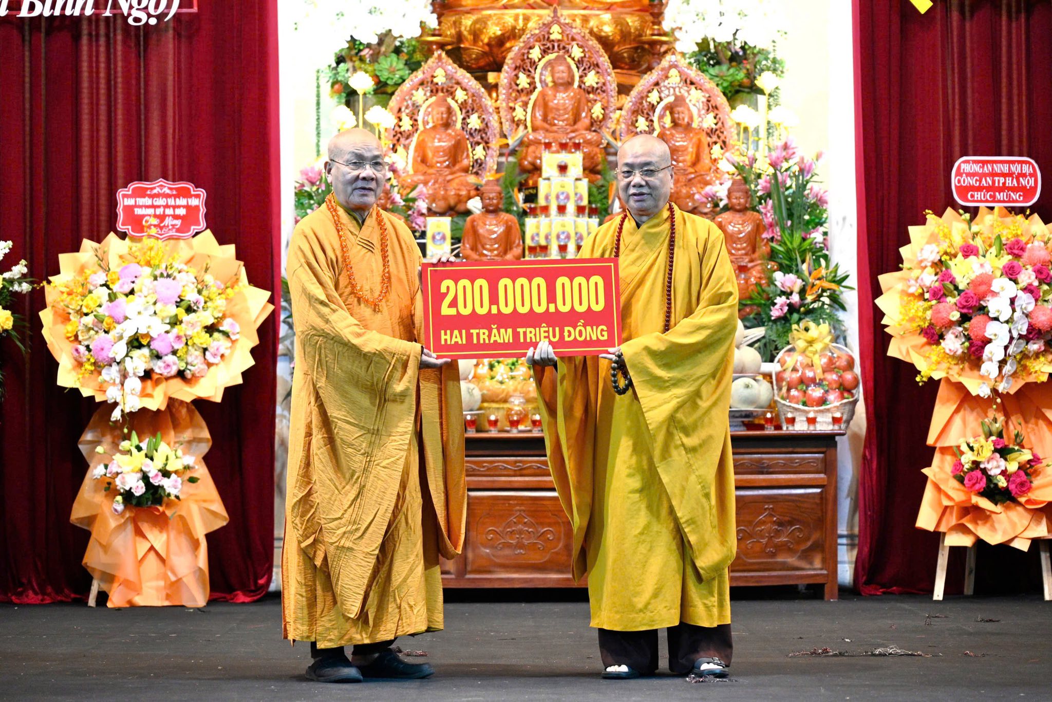 Dịp này, đại diện các Ban Trị sự các tỉnh thành khu vực phía Bắc, chư tôn đức trụ trì các chùa, đại diện các doanh nghiệp, nhà hảo tâm đã trao tịnh tài cúng dàng “Quỹ Bảo trợ Học đường của Học viện”.