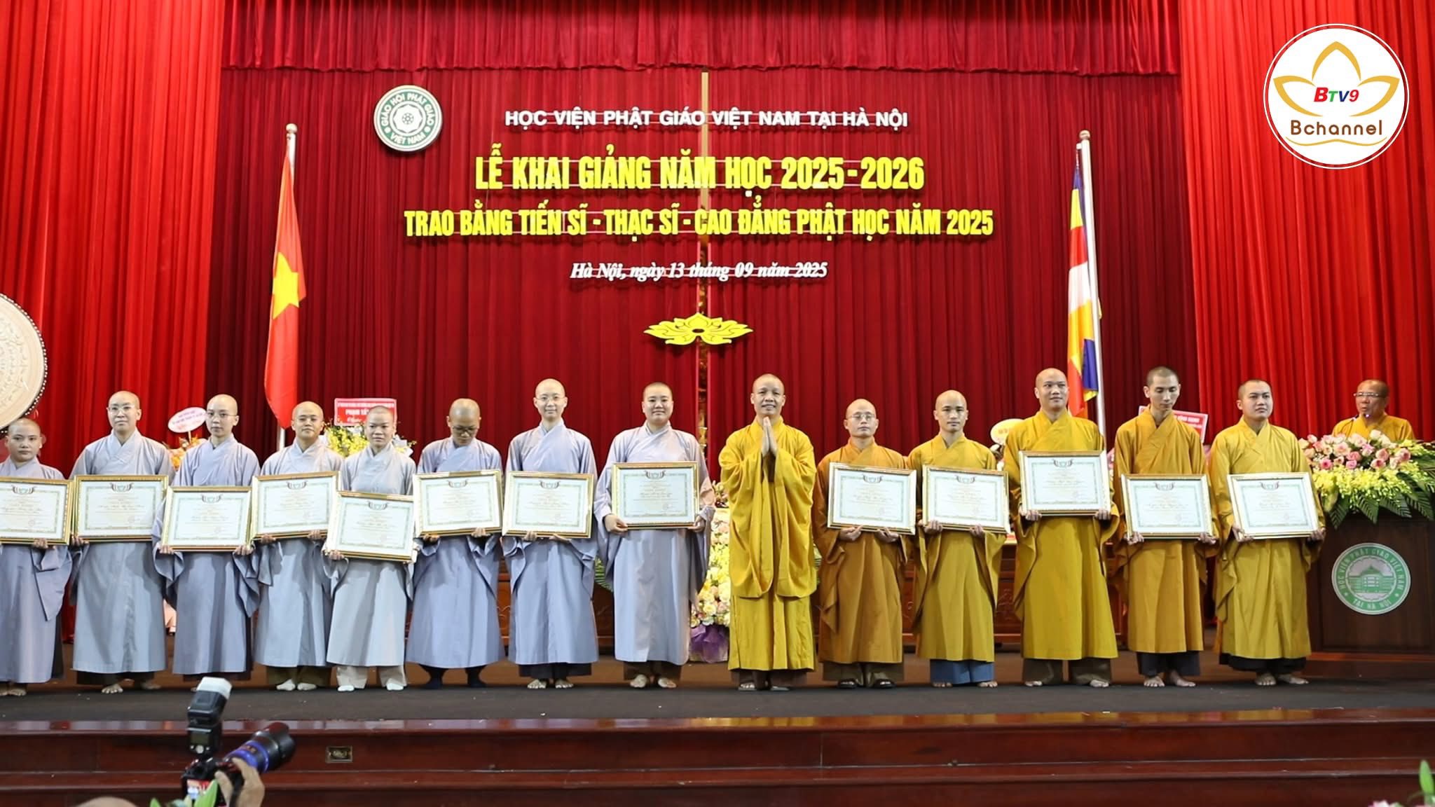 Sáng nay, ngày 13/9/2025 (22-7-Ất Tỵ), tại Hội trường Bảo tàng Học viện PGVN Việt Nam tại Hà Nội, Học viện đã long trọng tổ chức lễ Khai giảng năm học 2025 – 2026 và trao bằng Tiến sĩ – Thạc sĩ – Cao đẳng Phật học năm 2025. Được biết, có 47 Tăng Ni sinh các hệ được nhận bằng Tốt nghiệp trong đợt này.