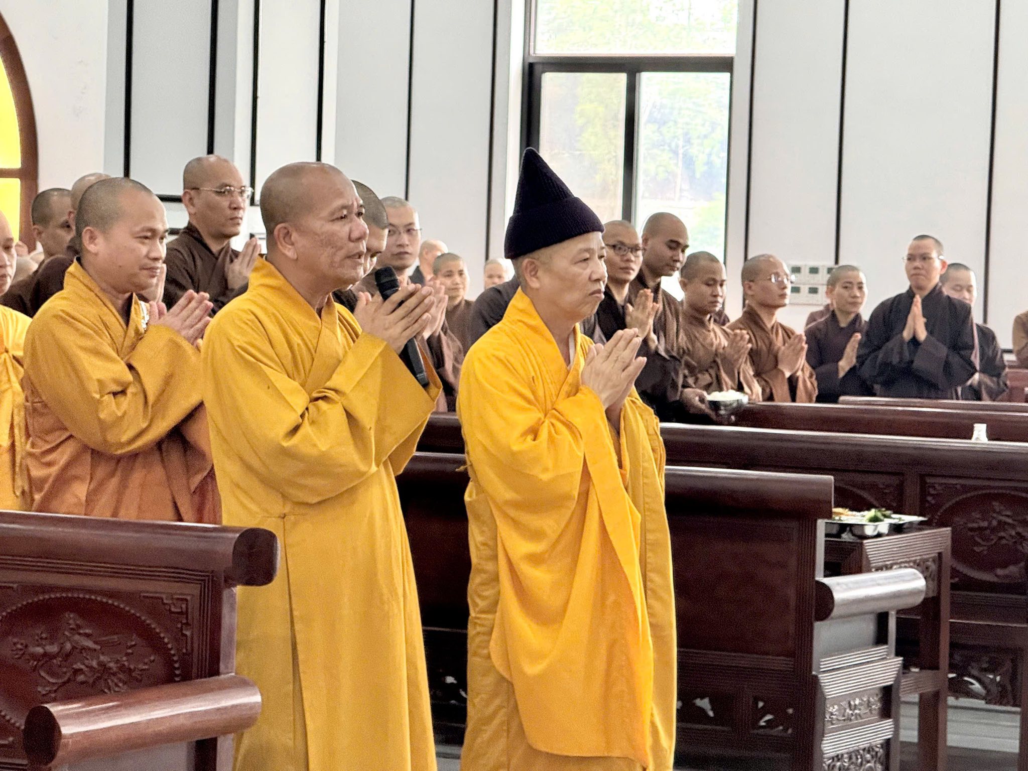 Sau các nghi thức Thỉnh Phật đại khoa, cung tiến Giác linh tại Chính điện chùa Non Nước (Sóc Thiên Vương thiền tự), chư tôn đức Hòa thượng, quý Thượng tọa, quý Thầy Văn phòng, Tăng Ni sinh Học viện đã đối trước tôn ảnh cố Hòa thượng Thích Viên Thành, dâng hương, dâng hoa cúng dàng, nhất tâm nhất nguyện cầu Giác linh Hòa thượng Cao đăng Phật quốc, thượng phẩm thượng sinh.