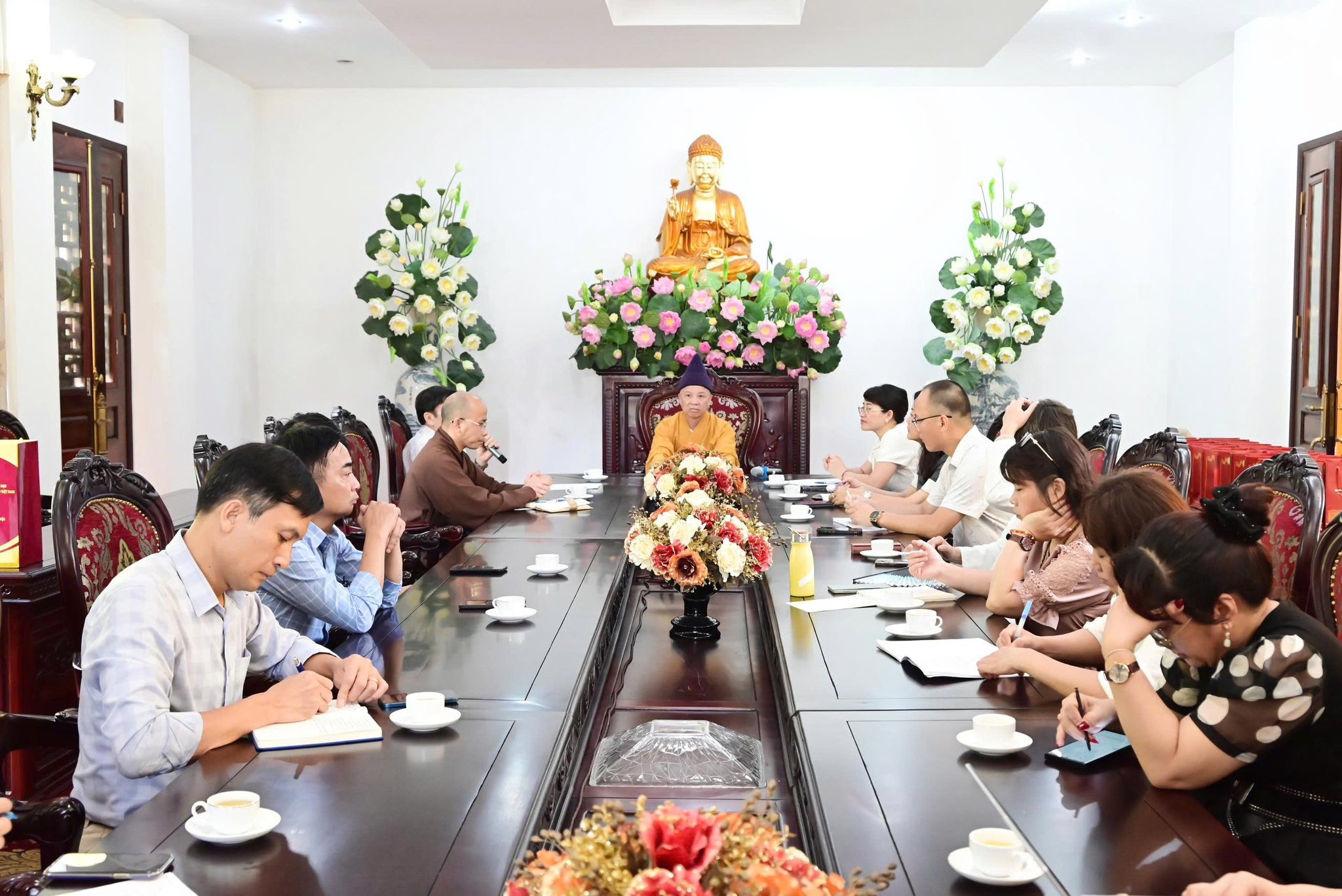 Hòa thượng Viện trưởng hoan hỷ và phát biểu đúc kết buổi làm việc và đưa ra một số định hướng trong liên kết đào tạo và nghiên cứu khoa học giữa hai bên thống nhất để công tác đào tạo ngành dân tộc, tín ngưỡng, tôn giáo trong các cơ sở giáo dục đạt hiệu quả tốt nhất.