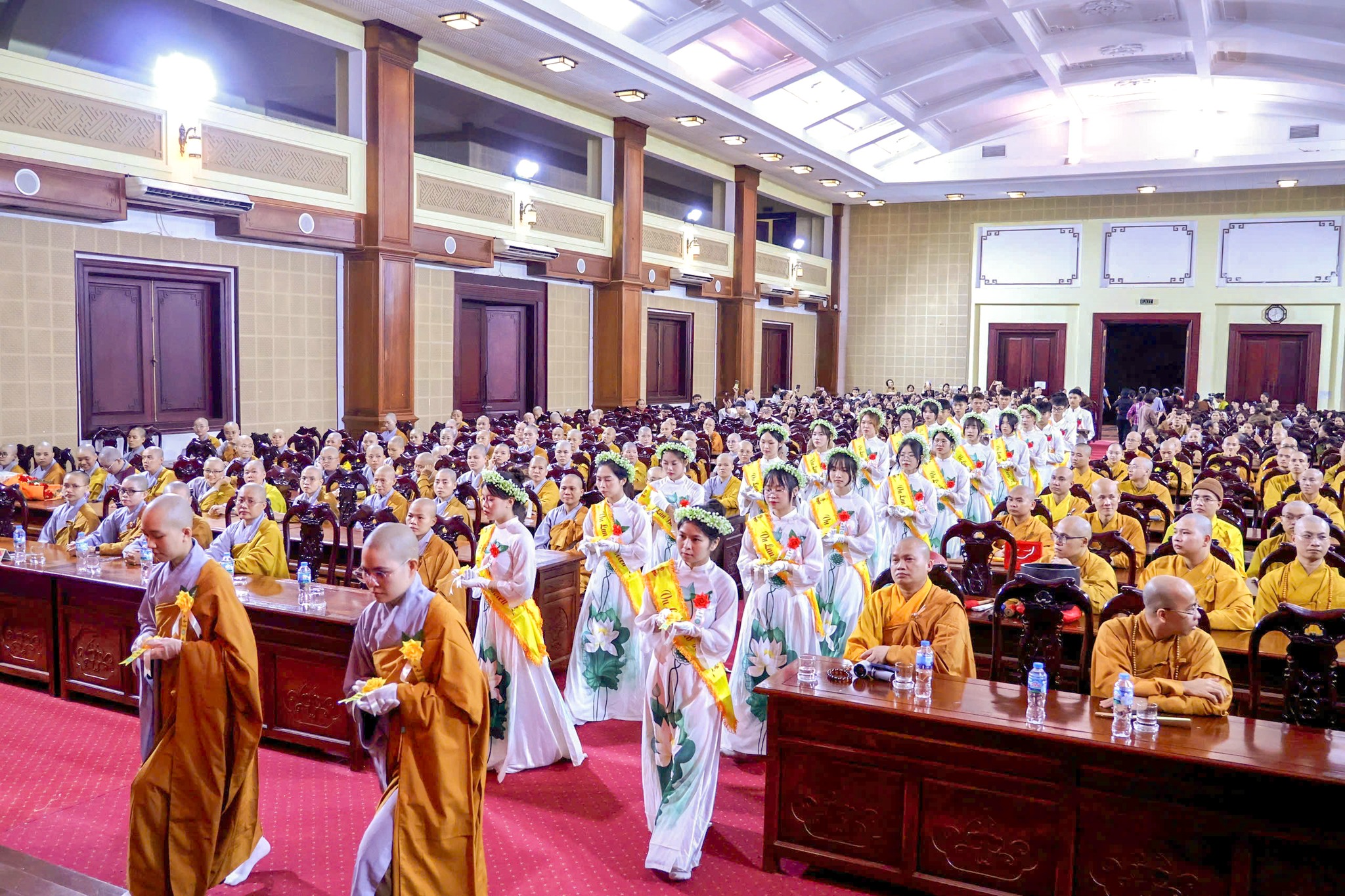 Cũng trong buổi lễ, đại diện Tăng Ni sinh và các thanh thiếu niên Phật tử thực hiện nghi thức cài hoa hồng, dâng lên cúng dàng chư tôn đức và dành tặng các vị đại biểu, thể hiện tinh thần tri ân các bậc Thầy hướng đạo và nhắc nhở mọi người về tình cảm mẫu tử thiêng liêng, cao quý.