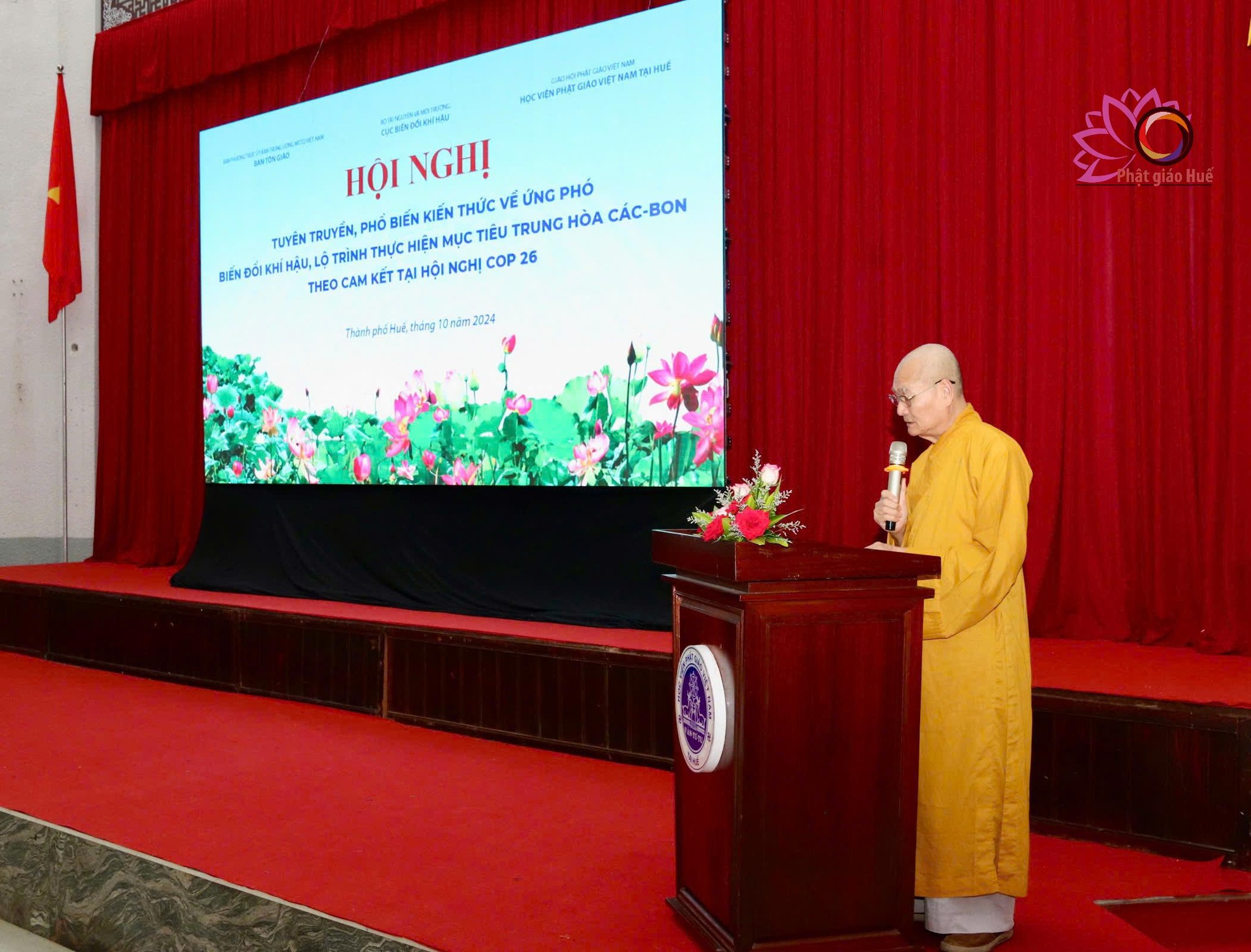 Chiều 03/10/2024 tại Học viện PGVN tại Huế (phường An Tây, thành phố Huế) đã diễn ra hội nghị tuyên truyền, phổ biến kiến thức về ứng phó biến đổi khí hậu đến Tăng Ni sinh Học viện PGVN tại Huế.