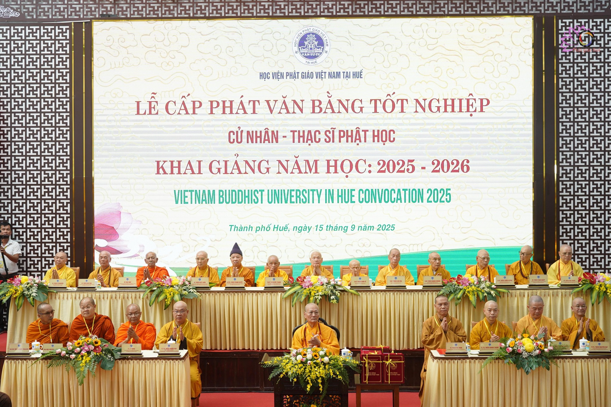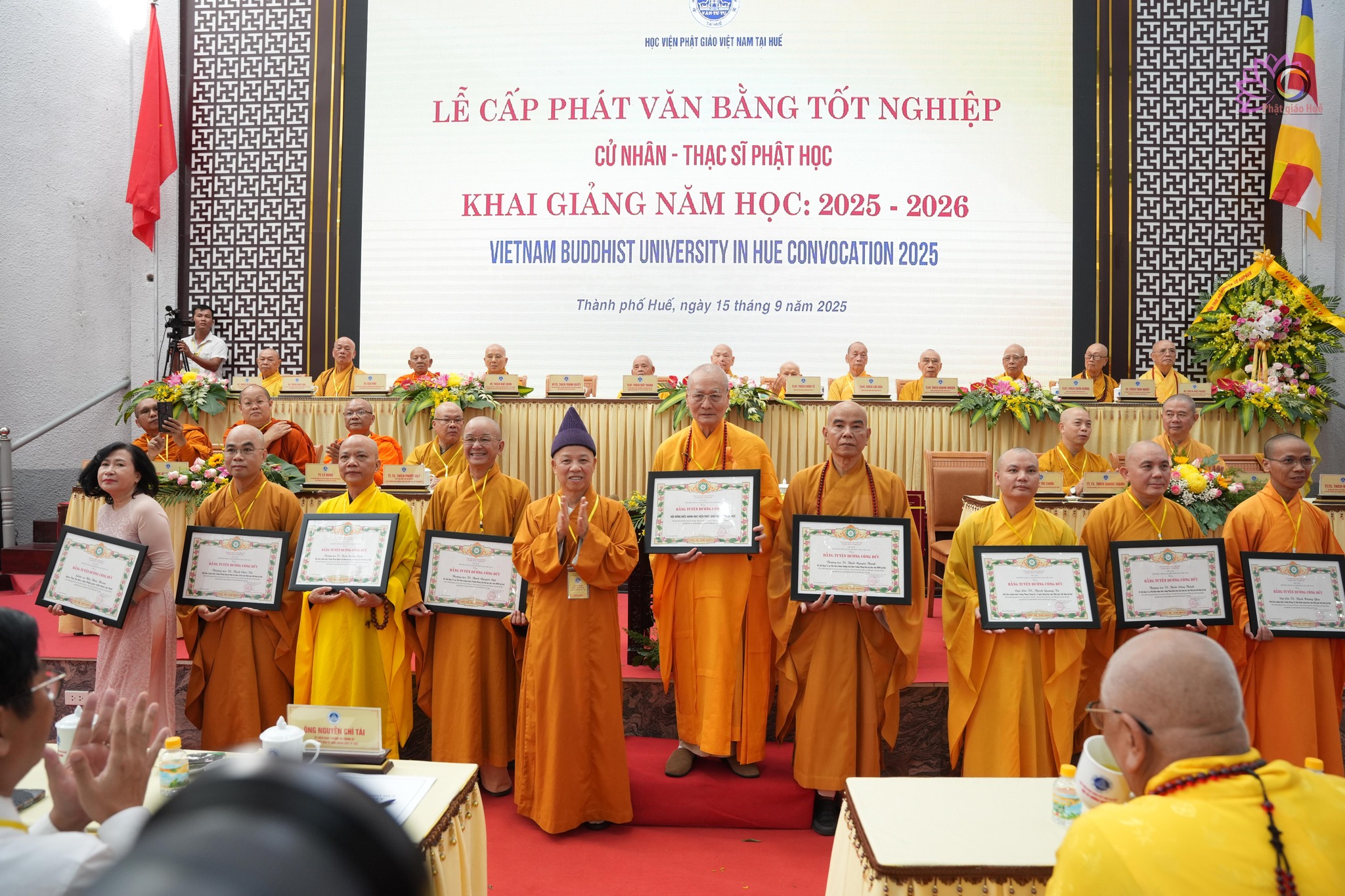 Sáng 15/9/2025 tại Học viện Phật giáo Việt Nam tại Huế (phường An Cựu, thành phố Huế) đã trang trọng diễn ra Lễ Cấp phát Văn bằng Tốt nghiệp Cử nhân Phật học khóa XII, Thạc sĩ khóa II & III và Khai giảng năm học 2025-2026.