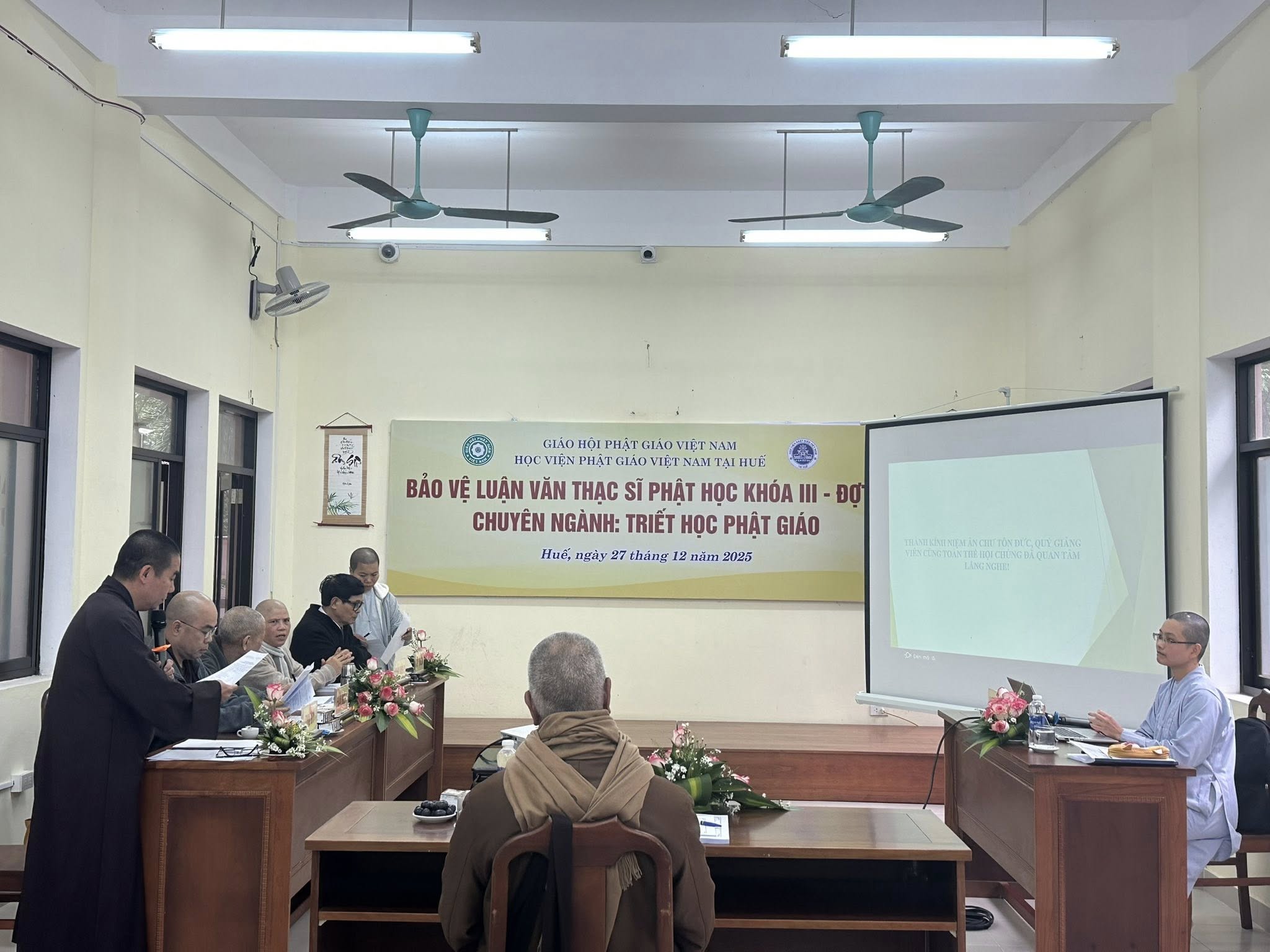 Buổi bảo vệ luận văn diễn ra trong không khí nghiêm túc, trang nghiêm và thành tựu viên mãn, thể hiện nỗ lực không ngừng của Học viện Phật giáo Việt Nam tại Huế trong công tác đào tạo nguồn nhân lực Phật học chất lượng cao phục vụ Giáo hội và xã hội.