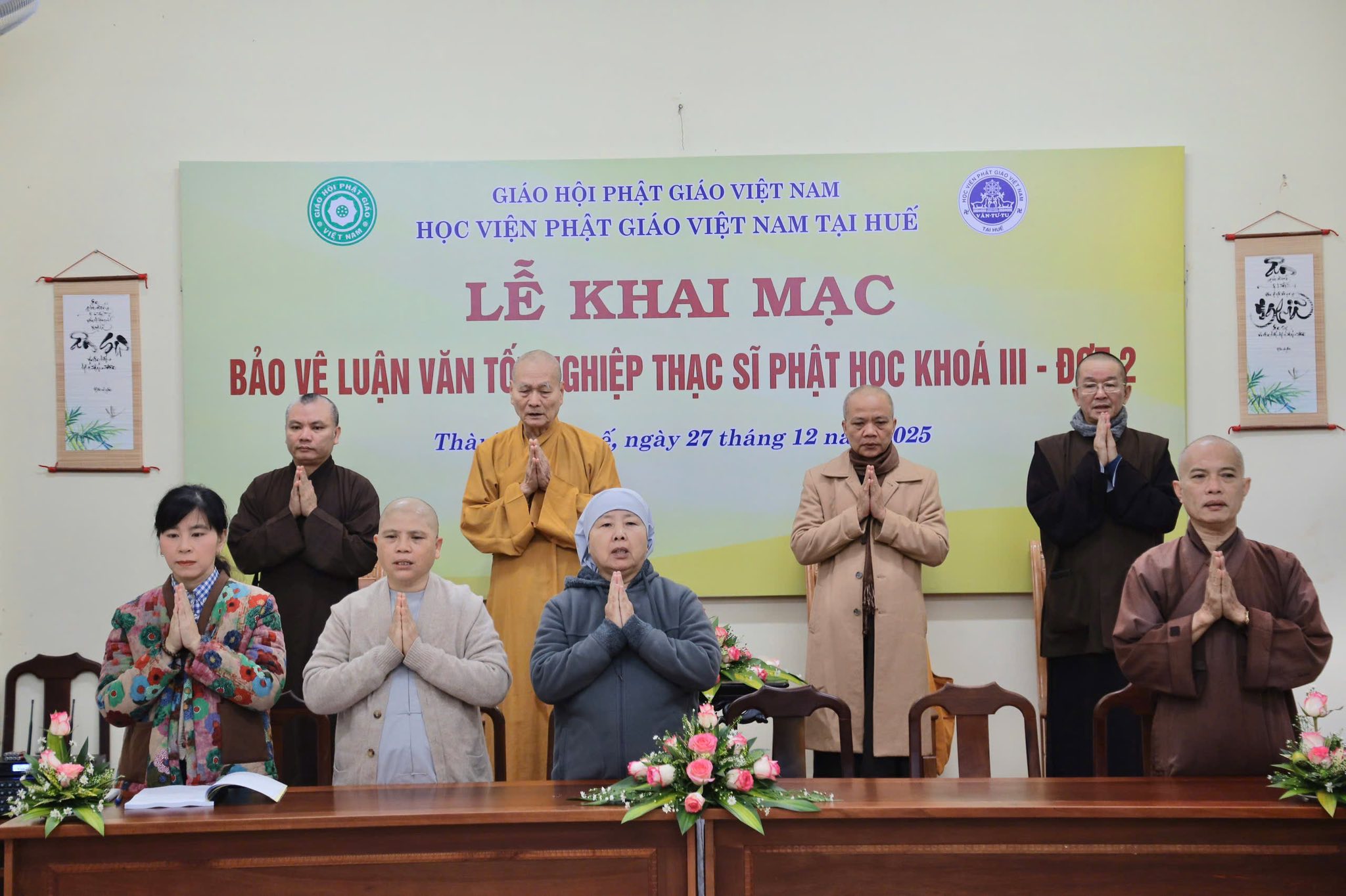 Sáng ngày 27/12/2025, tại Học viện Phật giáo Việt Nam tại Huế (phường An Cựu, thành phố Huế) đã long trọng diễn ra lễ Khai mạc bảo vệ luận văn tốt nghiệp Thạc sĩ Phật học khóa III.