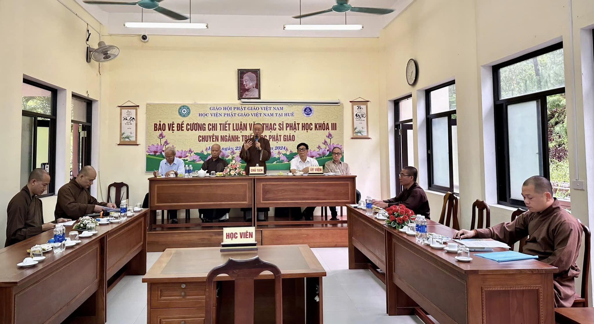 Sáng ngày 23/09/2024, Hội đồng Điều hành, Phòng Đào tạo Sau Đại học tổ chức buổi bảo vệ đề cương chi tiết luận văn Thạc sĩ Phật học cho 15 Học viên khoá III. Hội đồng Điều hành đã thành lập 2 Hội đồng bảo vệ đề cương do TT. TS. Thích Nguyên Thành – Phó Viện trưởng Thường trực kiêm Trưởng Phòng Đào tạo Học viện làm Chủ tịch Hội đồng chuyên ngành Lịch sử Phật giáo và TT. TS. Thích Nguyên Đạt – Phó Viện trưởng kiêm Trưởng Phòng Đào tạo Sau Đại học Học viện làm Chủ tịch Hội đồng chuyên ngành Triết học Phật giáo.