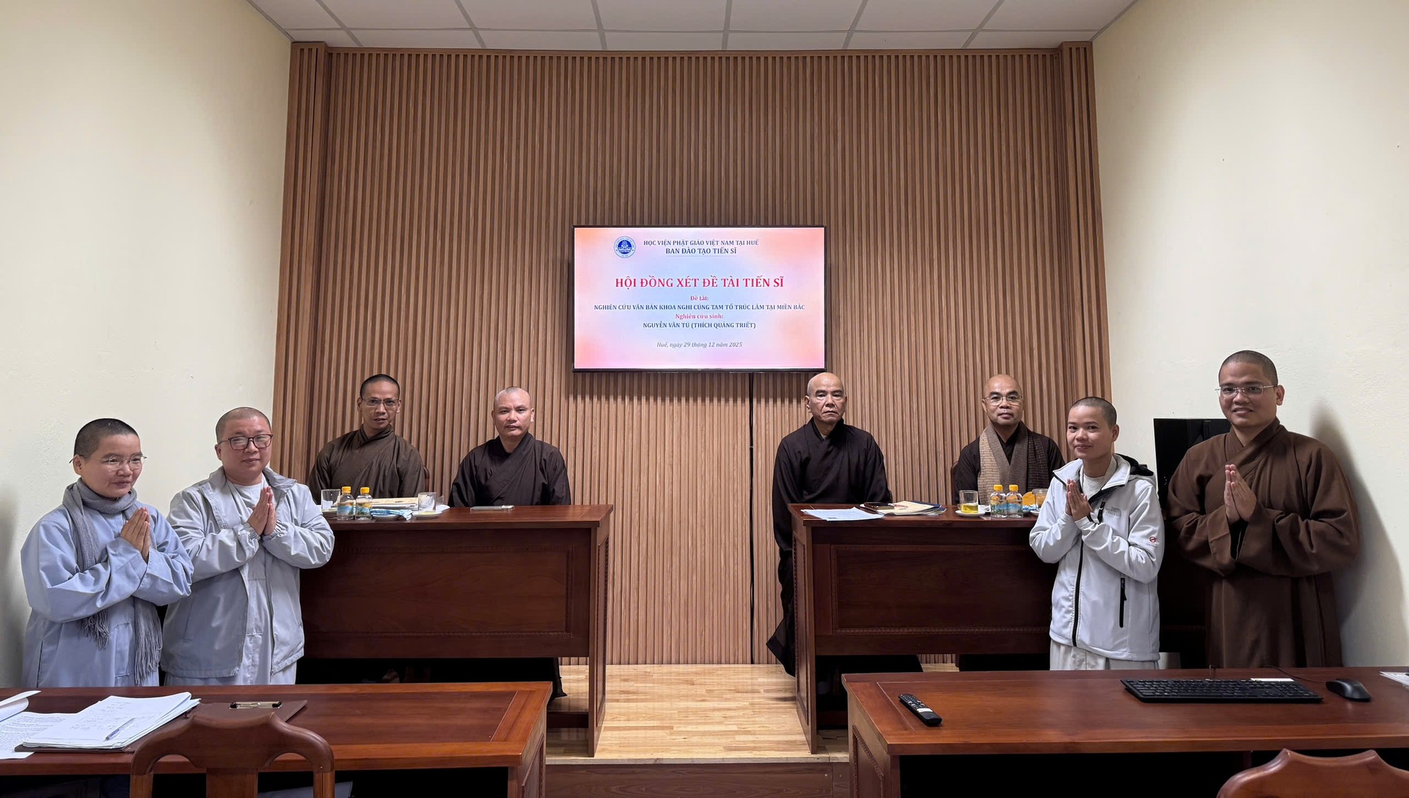 Sáng 29/12/2025 tại Học viện PGVN tại Huế (phường An Cựu, Huế); Ban Thực hiện đào tạo Tiến sĩ tại Học viện tiếp tục tổ chức bảo vệ đề tài cho 04 Nghiên cứu sinh Tiến sĩ.