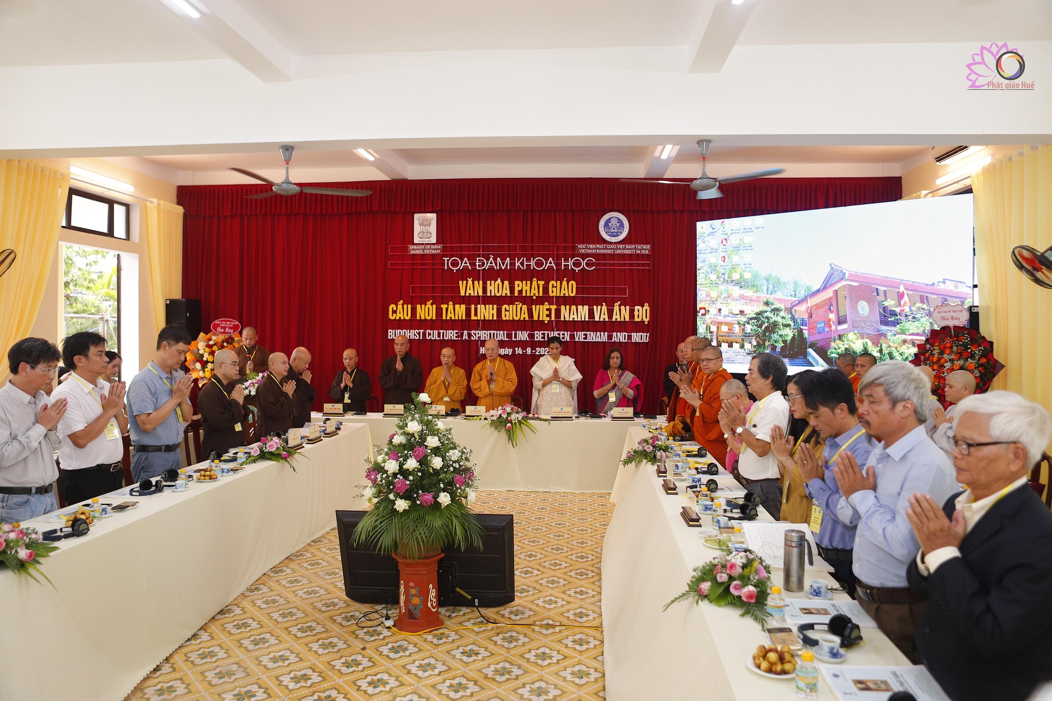 Hòa thượng Viện trưởng Thích Hải Ấn đã phát biểu khai mạc buổi tọa đàm, nhấn mạnh rằng Việt Nam là một quốc gia có truyền thống Phật giáo lâu đời, và đặc biệt có mối quan hệ hết sức mật thiết với Phật giáo Ấn Độ ngay từ buổi đầu du nhập. “Buổi tọa đàm hôm nay không chỉ là cơ hội để chúng ta cùng nhau nhìn lại những thành quả đạt được về giao lưu văn hóa giữa hai quốc gia trong quá khứ, mà quan trọng hơn, chính là bước khởi đầu đầy triển vọng, hứa hẹn mở ra nhiều mối quan hệ hợp tác đào tạo, giao lưu văn hóa, trao đổi học thuật giữa hai quốc gia; giữa Học viện Phật giáo Việt Nam tại Huế với các ngôi trường Đại học danh tiếng tại Ấn Độ.