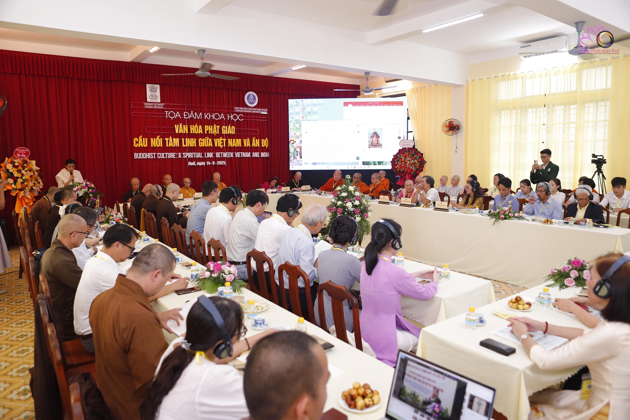 Chiều 14/9/2025 tại Cơ sở 1 – Học viện Phật giáo Việt Nam tại Huế (chùa Hồng Đức, phường Thủy Xuân, thành phố Huế); Học viện Phật giáo Việt Nam tại Huế phối hợp với Đại sứ quán Ấn Độ đồng tổ chức tọa đàm khoa học “Văn hóa Phật giáo, cầu nối tâm linh giữa Việt Nam và Ấn Độ”.