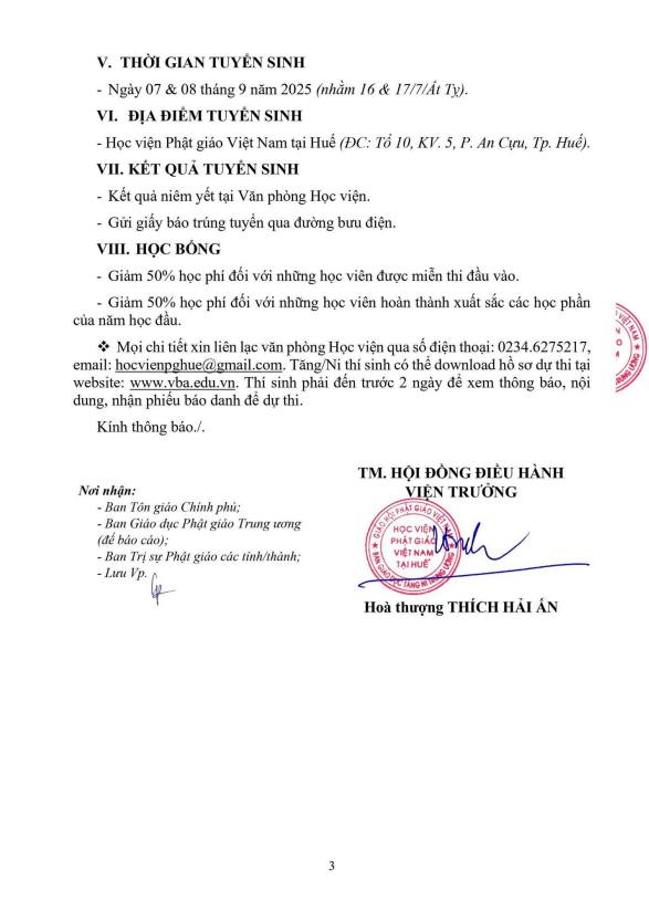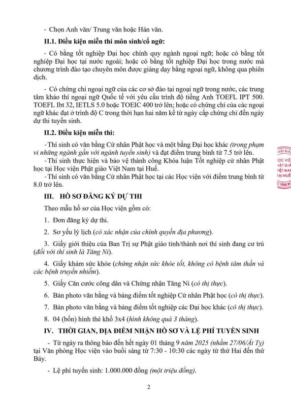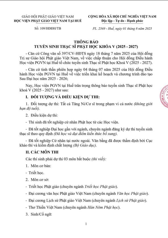 Học viện PGVN tại Huế: Tuyển sinh thạc sĩ Phật học khóa V (2025-2027)