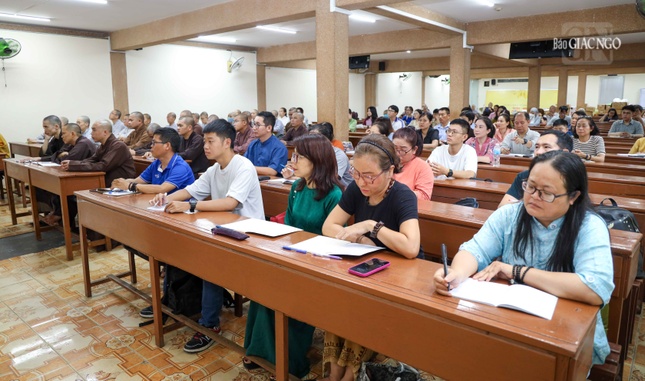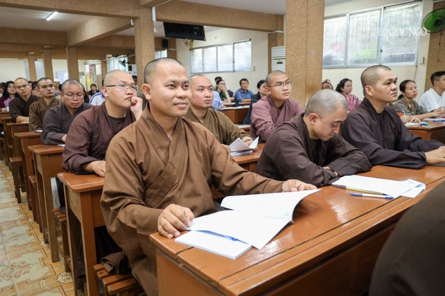 Sau phần thông báo nội quy lớp học của Đại đức Thích Giác Thọ, Trưởng phòng Hành chánh Học viện, các học viên đã có buổi học đầu tiên do tiến sĩ Nguyễn Tiên Yên, Giảng viên Học viện Phật giáo VN tại TP.HCM đảm trách.