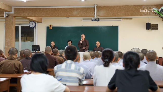 Hòa thượng cũng nhắn nhủ thêm: “Muốn nghiên cứu chuyên sâu Phật học ở chương trình thạc sĩ và tiến sĩ Phật học, chúng ta cần biết ít nhất 2 thánh ngữ trở lên. Mong các học viên cố gắng học tập để đạt được kết quả tốt”.