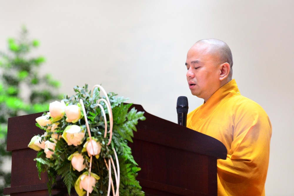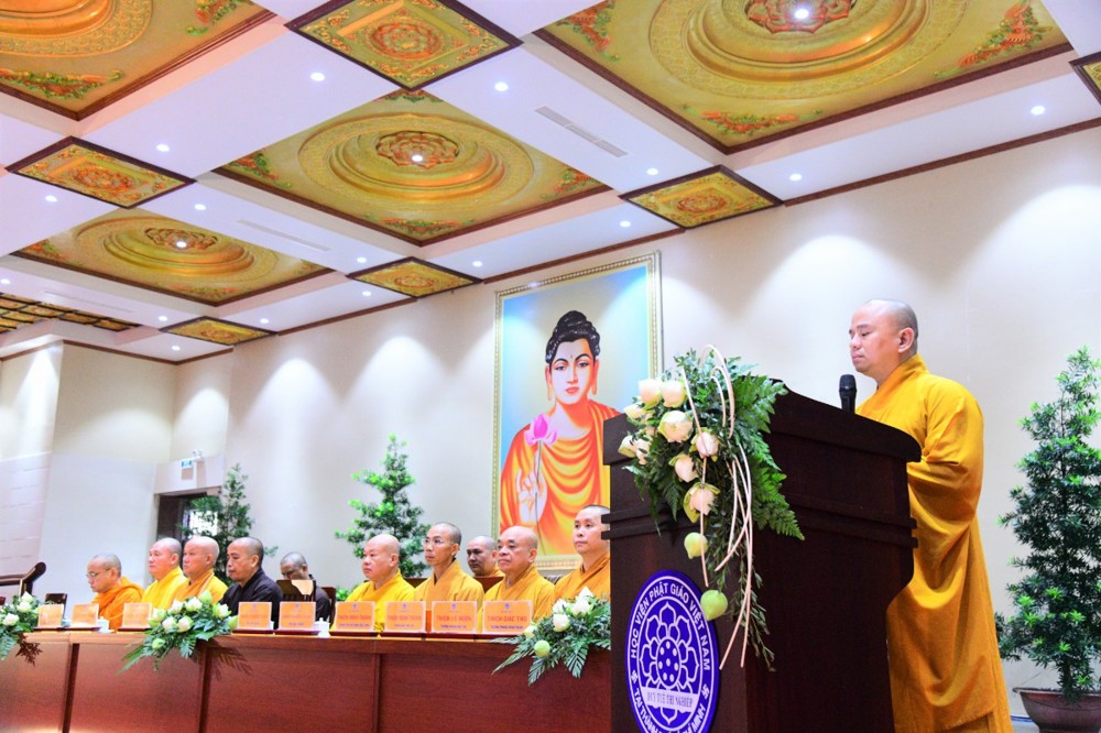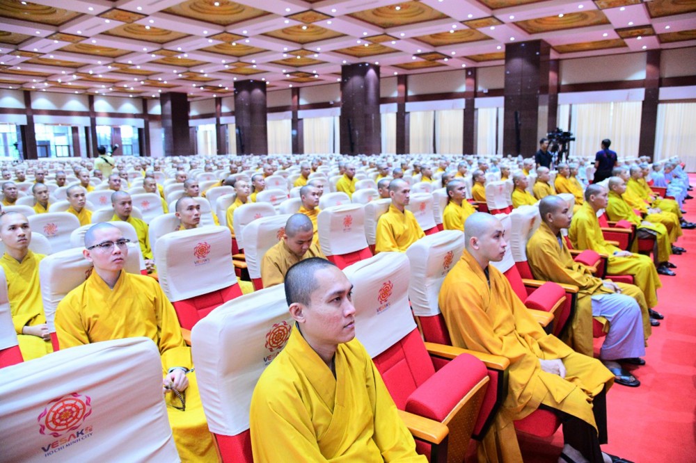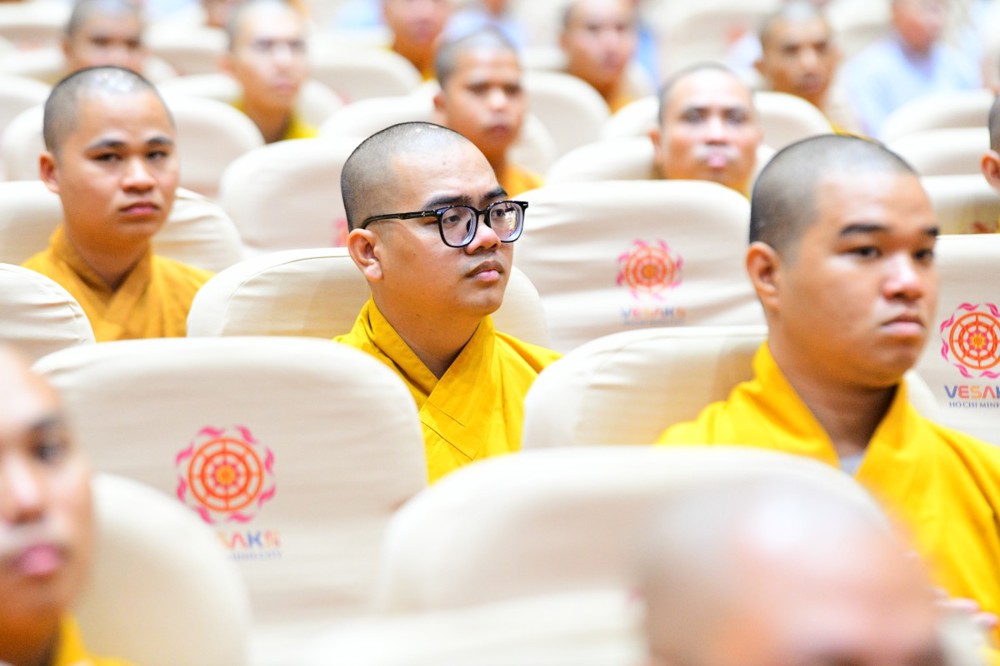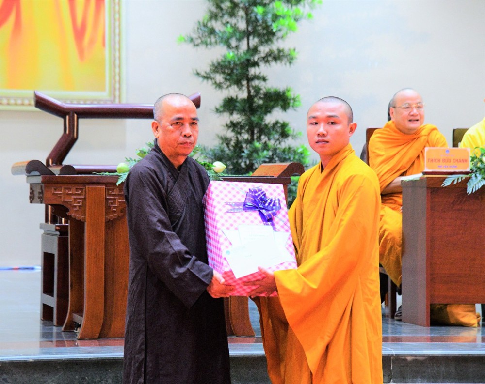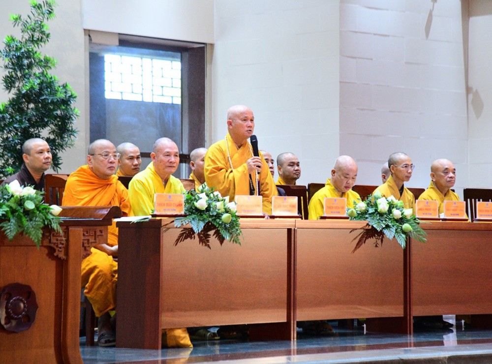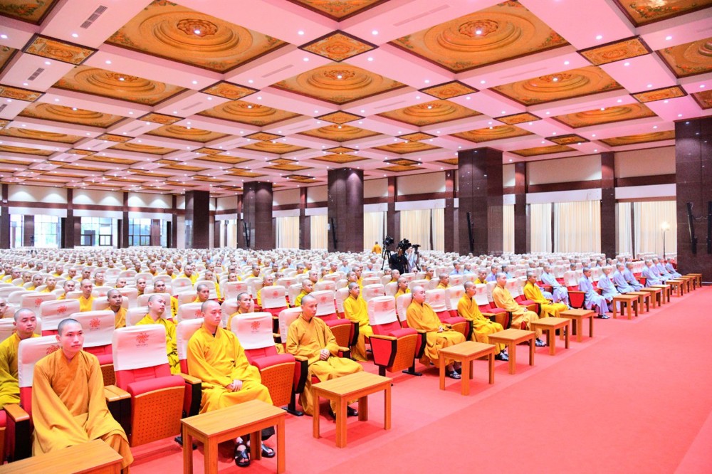 Tại đây, đại diện Hội đồng Điều hành đã báo cáo kết quả tuyển sinh hệ cử nhân, nhập học nội trú và làm quen với thời khoá tu học của các tân Tăng Ni sinh khoá XX với 221 vị.