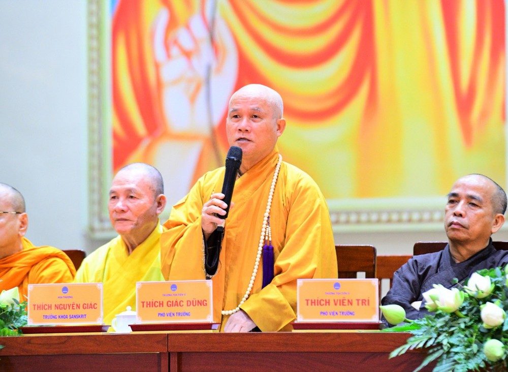 Đạo từ tại buổi lễ, TT. Thích Giác Dũng thay lời Đại lão Hoà thượng Viện trưởng chúc mừng các tân Tăng, Ni sinh khoá XX, qua đây mong muốn lớp Tăng Ni sinh kế thừa nỗ lực tu học, xứng đáng với bề dày truyền thống của một ngôi trường Phật học lớn trong hệ thống giáo dục Phật giáo cả nước.