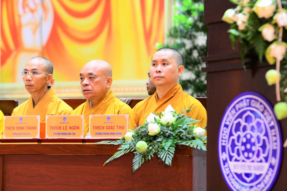 Lễ khai giảng đặt dưới sự chứng minh tối cao từ xa của Đức Pháp chủ GHPGVN, Viện trưởng Học viện Phật giáo Việt Nam tại TP.HCM – Đại lão Hòa thượng Thích Trí Quảng.