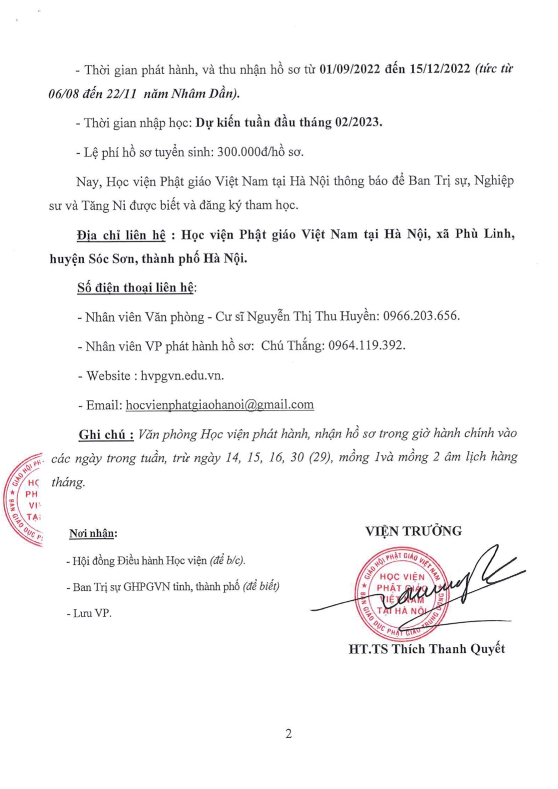 Địa chỉ liên hệ : Học viện Phật giáo Việt Nam tại Hà Nội, xã Phù Linh, huyện Sóc Sơn, thành phố Hà Nội.
