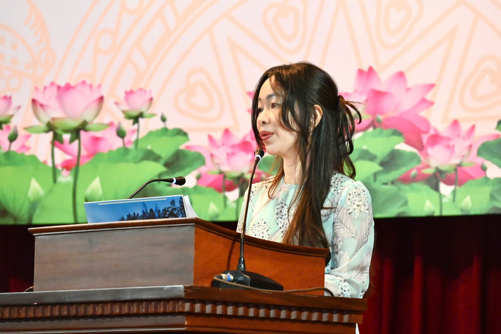 Đại diện Cục Biến đổi khí hậu phát biểu tại Hội nghị: bà Mai Kim Liên – Phó Cục trưởng Cục Biến đổi khí hậu, Bộ Tài nguyên và Môi trường đã có những nhận xét đánh giá tình hình thực trạng tại Việt Nam và theo thông báo thế giới, nhiệt độ bình quân trên thế giới đã nóng lên thêm 1,1°C và tăng nhanh đến mức báo động đỏ. Trái Đất sẽ hứng chịu thảm họa khí hậu trong tương lai không xa. Tình trạng nước biển dâng, sóng nhiệt kéo dài và nghiêm trọng, ngày càng nhiều giống loài tuyệt chủng là hậu quả đã diễn ra rõ rệt trong những năm gần đây. Điều này là minh chứng rõ rệt để tất cả các Ban ngành, đoàn thể, tổ chức tôn giáo, mặt trận và xã hội cùng chung tay vì một hành tinh xanh.