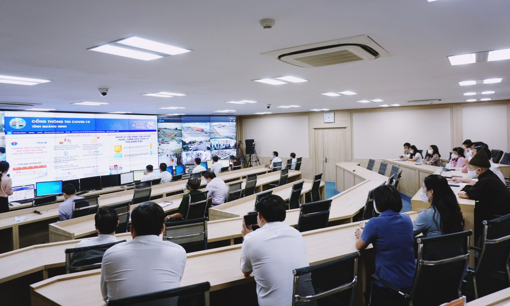 Đoàn công tác đã tới thăm Trung tâm chỉ huy phòng, chống covi-19, Trung tâm tích hợp dữ liệu tỉnh, cổng thông tin covid-19 tỉnh Quảng Ninh.