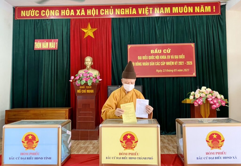Trong không khí cả nước phấn khởi bầu cử đại biểu Quốc hội khóa XV và đại biểu HĐND các cấp nhiệm kỳ 2021-2026, sáng nay (23.5), HT Thích Thanh Quyết, Phó Chủ tịch Hội đồng Trị sự TƯGHPGVN; Trưởng ban Trị sự Phật giáo Quảng Ninh cùng chư tăng ni, phật tử đã thực hiện quyền và nghĩa vụ công dân của mình tại Quảng Ninh cùng cử tri cả nước lựa chọn những người xứng đáng vào các cơ quan dân cử.