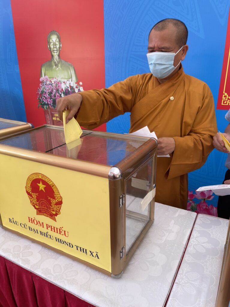 HT Thích Thanh Quyết rất vui mừng, phần khởi cùng với cử tri của tỉnh Quảng Ninh và cả nước thực hiện quyền và nghĩa vụ công dân của mình, tham gia cuộc bầu cử đại biểu Quốc hội và đại biểu Hội đồng nhân dân các cấp nhiệm kỳ 2021 – 2026.