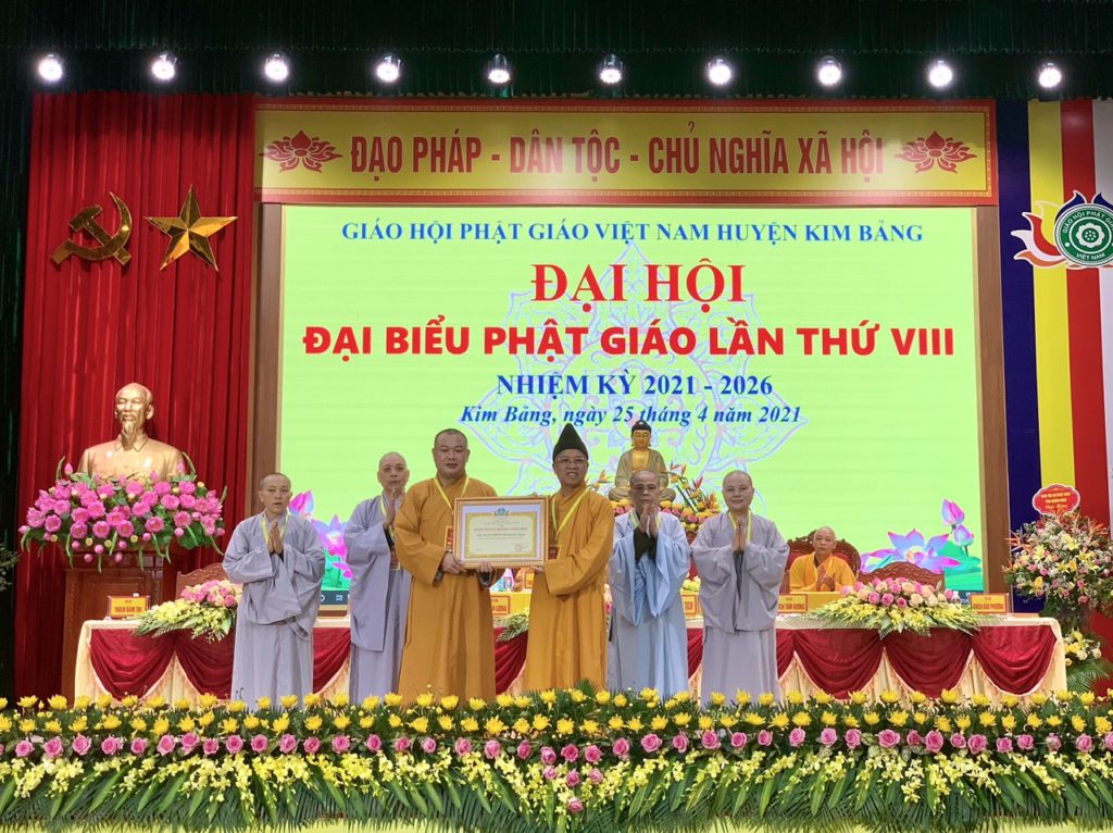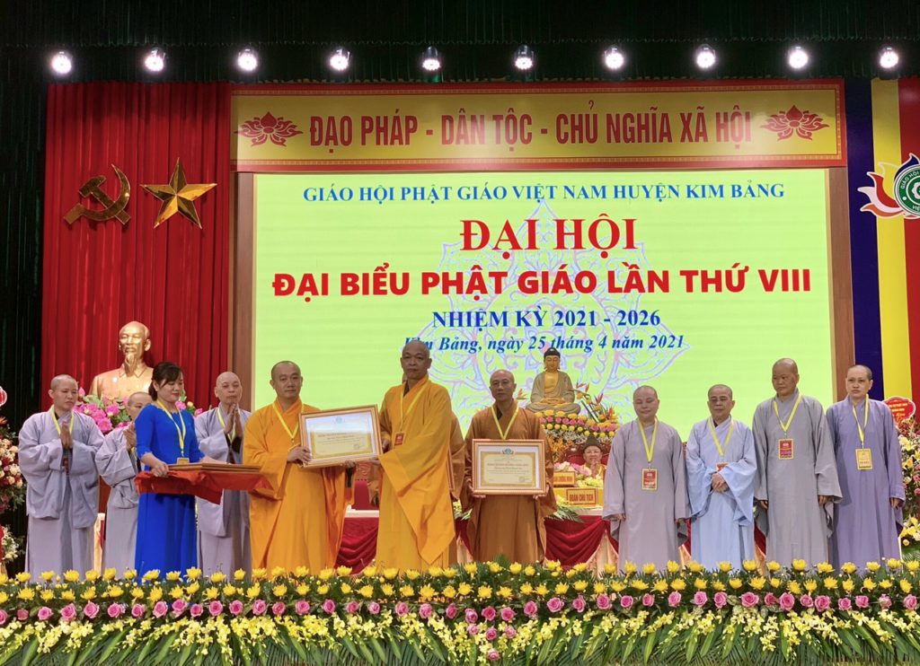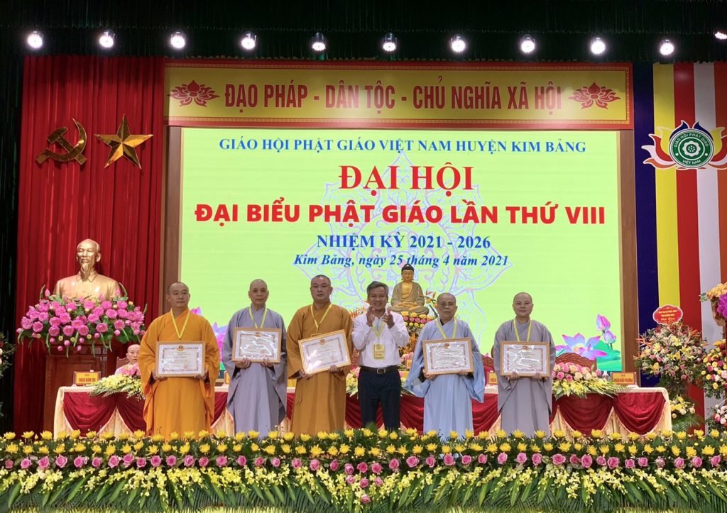 Ghi nhận những đóng góp đó, BTS Phật giáo tỉnh Hà Nam cùng đại điện chính quyền huyện Kim Bảng đã trao tặng Giấy khen cho các tập thể và cá nhân đã có thành tích xuất sắc trong nhiệm kỳ vừa qua.