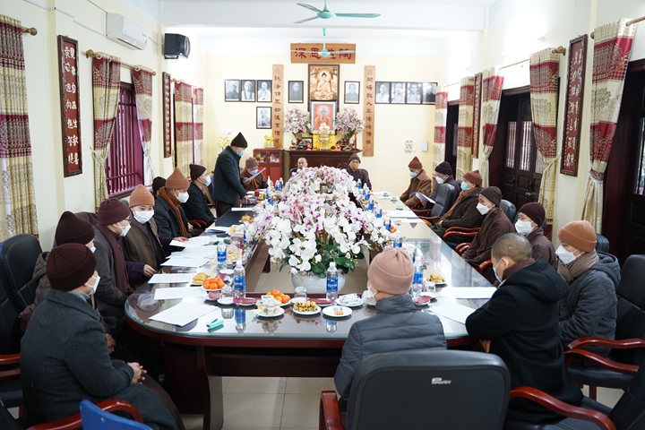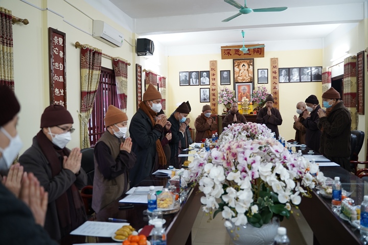 Trước khi bước vào buổi lễ, chư Tôn đức Ban giám hiệu đã có phiên họp kiểm tra rà soát lại toàn bộ các công tác chuẩn bị trước khi bước vào kỳ thi, để đảm bảo cho kỳ thi được diễn ra thành công tốt đẹp.