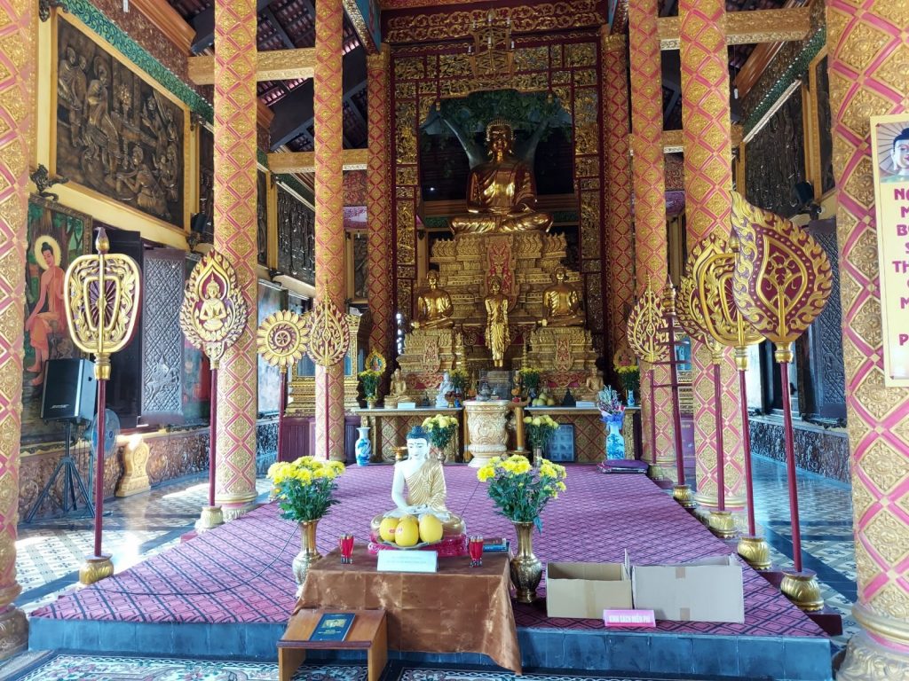 Chùa Khmer thường được chọn xây dựng trên một khu đất rộng, bao bọc bởi những hàng cây dầu, cây thốt nốt hay rừng tràm xanh tươi. Ngôi chùa Khmer này nằm trong quần thể Làng Văn hóa – Du lịch các dân tộc Việt Nam (Sơn Tây, Hà Nội) với tổng diện tích 0,8ha. Ngôi chùa được xây dựng và hoàn thành vào cuối năm 2013 theo mẫu kiến trúc của chùa Khleang (TP Sóc Trăng, tỉnh Sóc Trăng). Tổng thể một ngôi chùa Khmer gồm: cổng chùa, tường rào, ngôi chính điện, tháp đựng cốt, tăng xá, nhà hội, an xá,… Trong đó, nổi bật và quan trọng nhất là ngôi chính điện được xây dựng ở trung tâm của ngôi chùa.