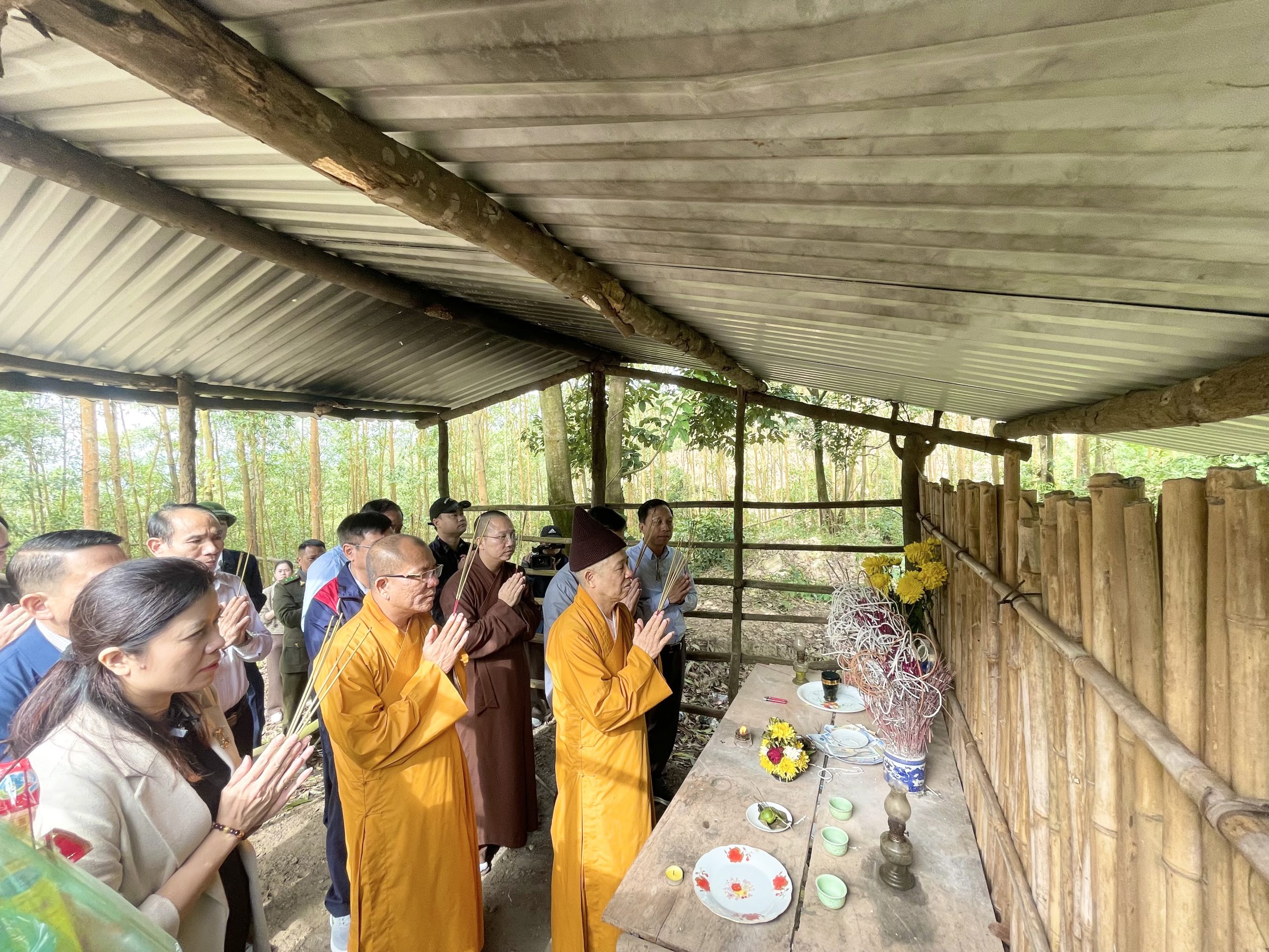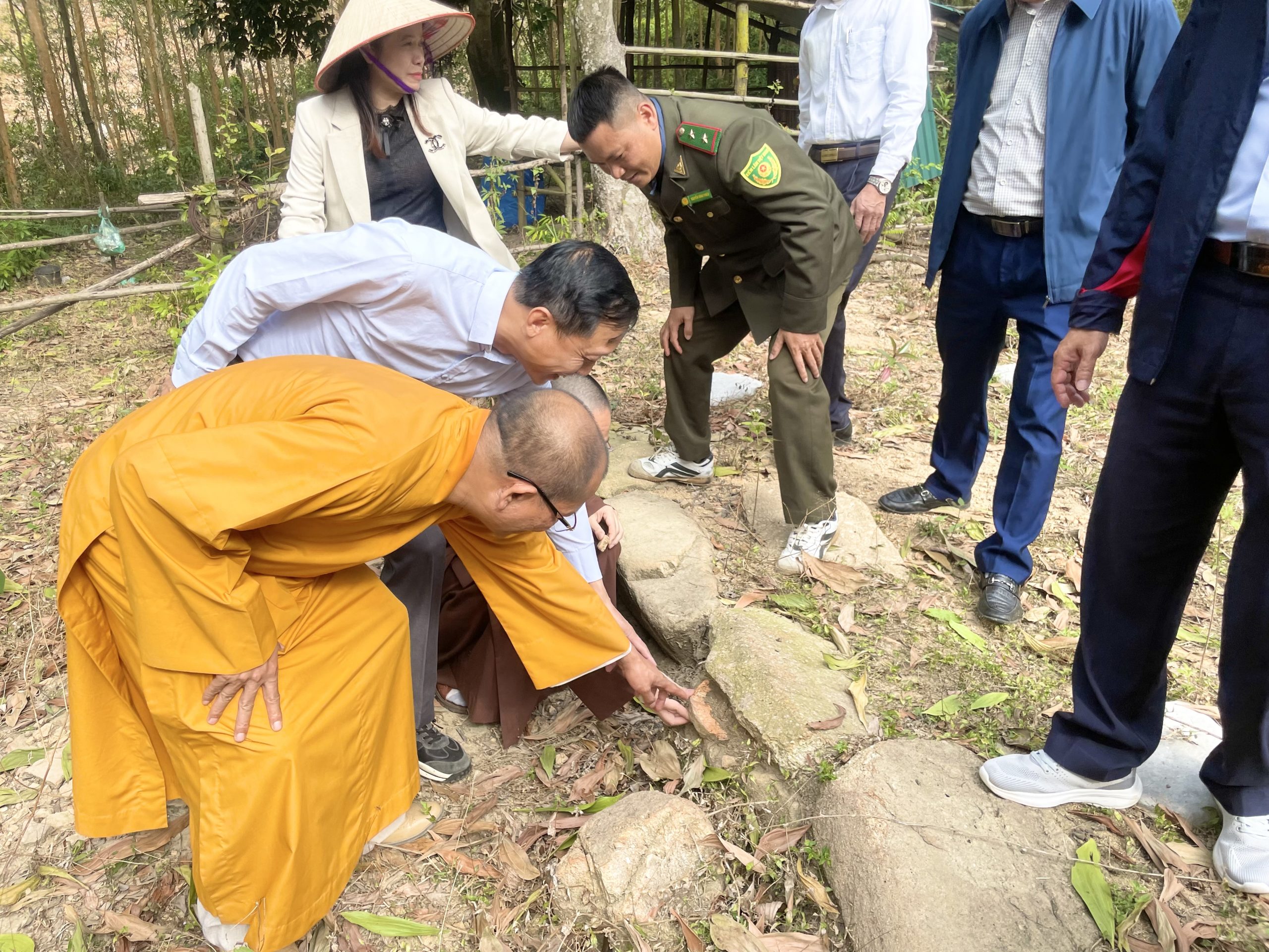 Tại đây đoàn đã đến dâng hương, khảo sát hiện trạng, nghiên cứu đề xuất phục hồi lại ngôi chùa Hồ trên nền móng, chân tảng còn lưu giữ được.