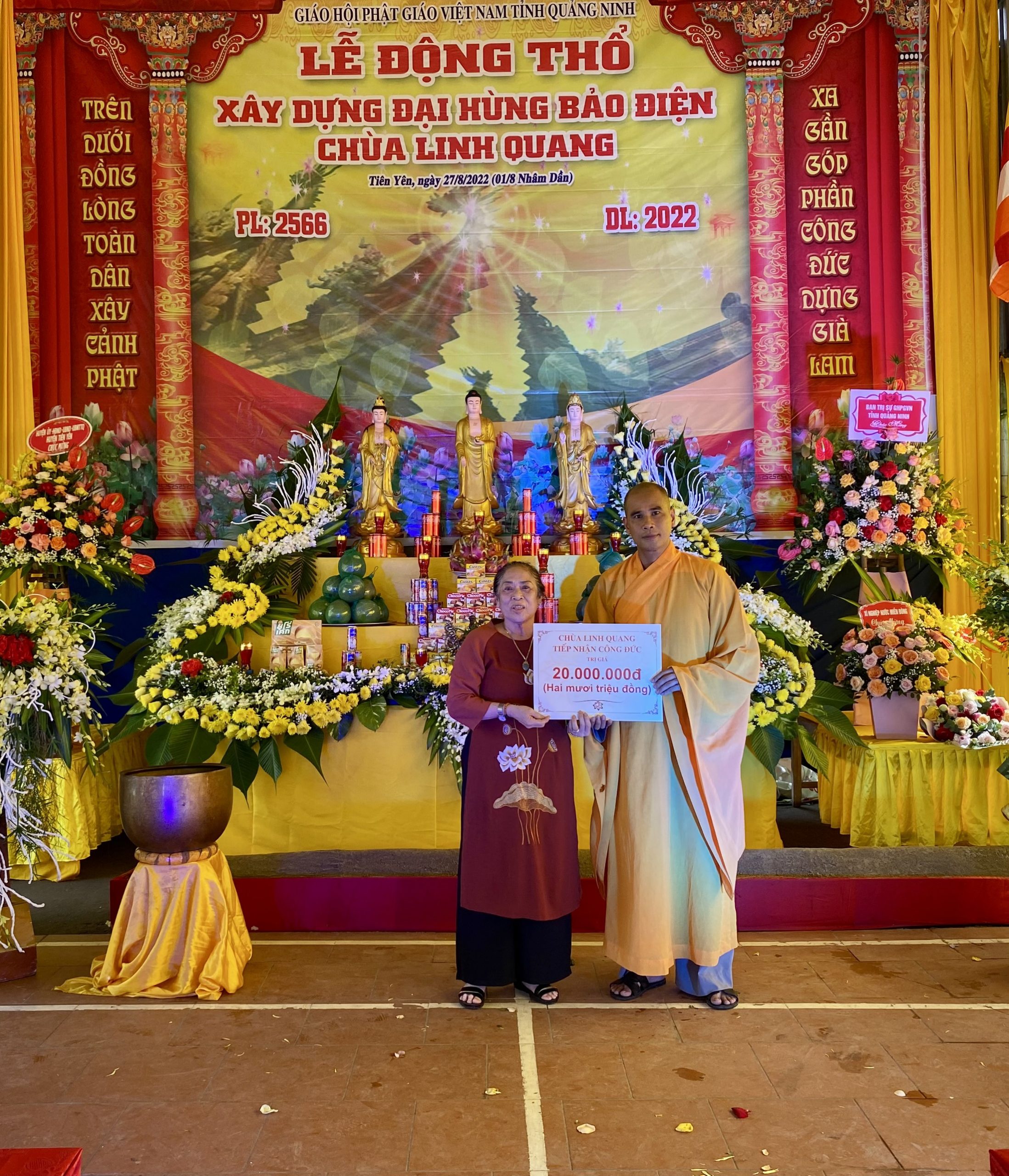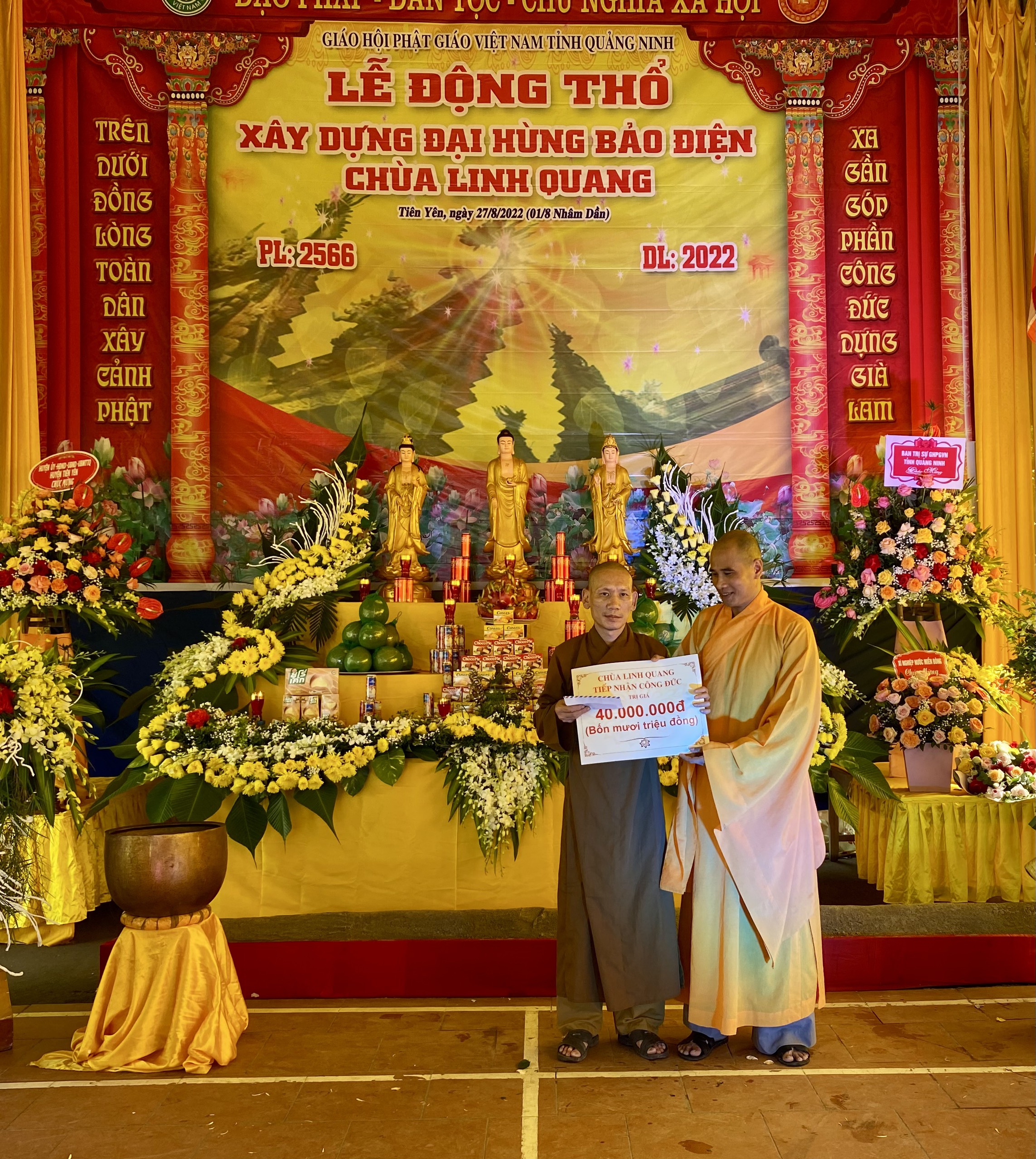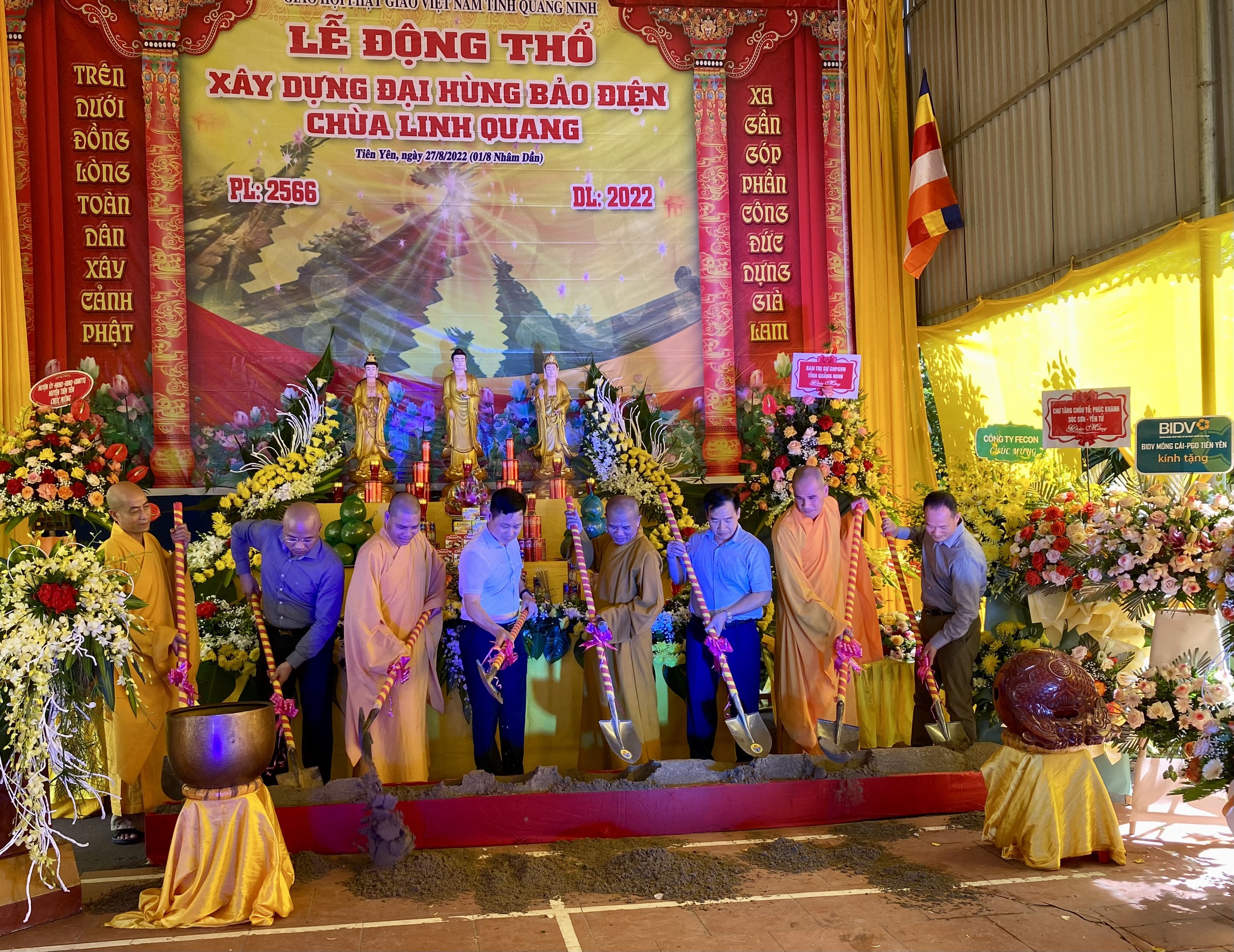 Thay mặt tăng chúng chùa Linh Quang, Đại đức Thích Giác Hòa đã báo cáo dự án xây dựng ngôi Đại hùng bảo điện chùa Linh Quang, theo đó, dự án có tổng mức đầu tư khoảng 14 tỷ đồng, hoàn toàn từ nguồn vốn xã hội hóa, xây dựng một tầng theo kiến trúc truyền thống Phật giáo miền Bắc, diện tích 252,8m2, bố cục hình chữ Đinh, hệ khung cột bằng bê tông cốt thép, hệ thống cửa bức bàn bằng gỗ, mái lợp ngói mũi hài…