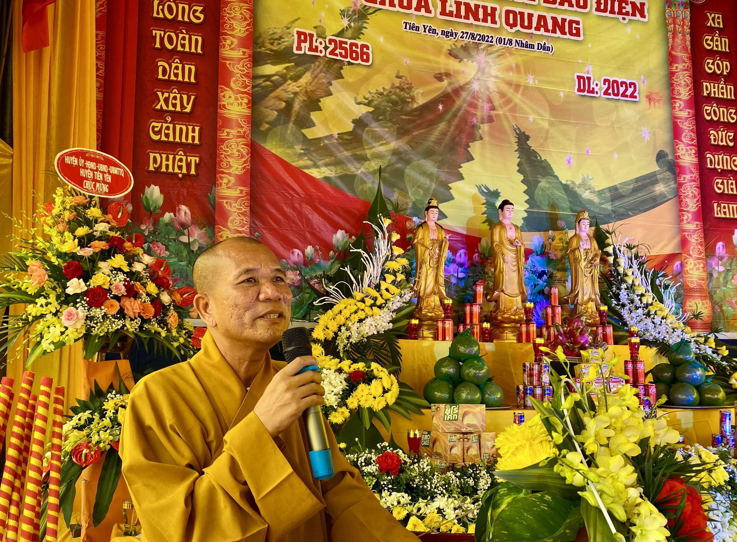 Ban đạo từ tại buổi lễ, Thượng tọa Thích Đạo Hiển đã nhấn mạnh vai trò quan trọng của một ngôi chùa Việt đối với đời sống văn hóa, tâm linh của người dân địa phương. Thượng tọa cũng tán thán công đức của Đại đức trụ trì Thích Vân Phong, khi từ ngày đầu về ngôi chùa chỉ là một mái nhà tôn hơn 30m2, với biết bao công sức bỏ ra, để hôm nay ngôi chùa đã có quỹ đất rộng hơn, xây dựng được một số công trình như nhà tổ, nhà khách… để nhân dân, Phật tử địa phương có nơi tu tập, sinh hoạt tín ngưỡng, tâm linh, và hôm nay, tiếp tục khởi công động thổ xây dựng công trình quan trọng nhất của một ngôi chùa, đó là ngôi Đại hùng bảo điện, hay Chính điện thờ Phật. Ở một nơi điều kiện kinh tế còn nhiều khó khăn, số lượng Phật tử còn ít ỏi, việc xây dựng chùa với nguồn kinh phí lớn như vậy không phải là việc dễ dàng.